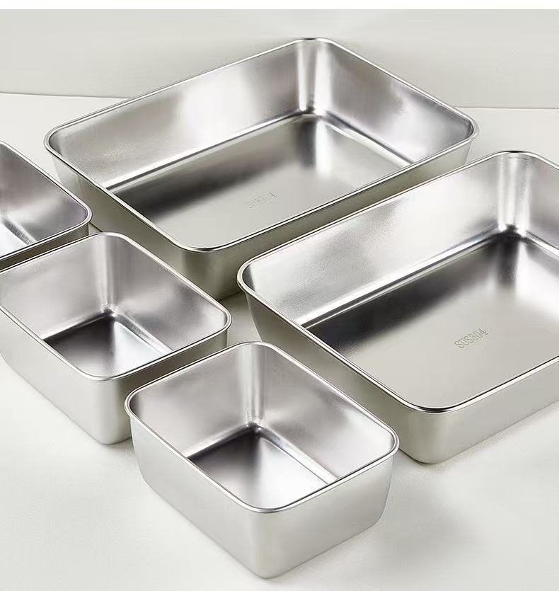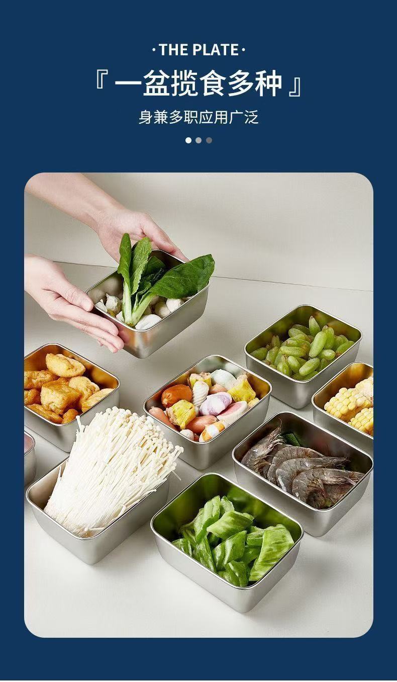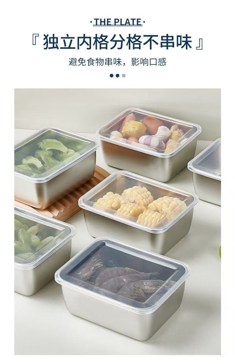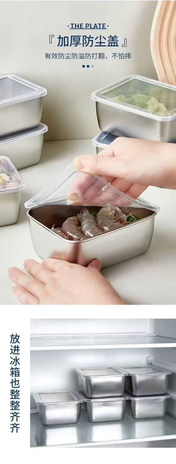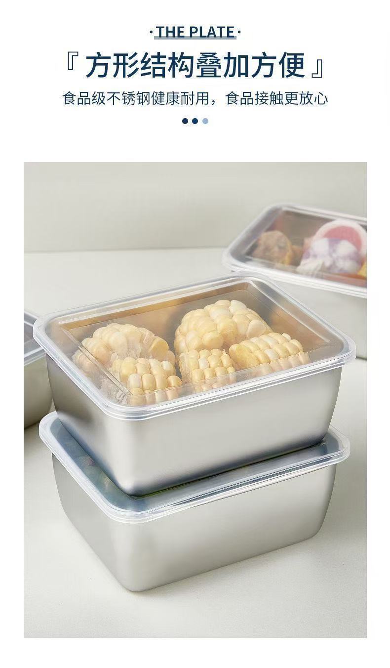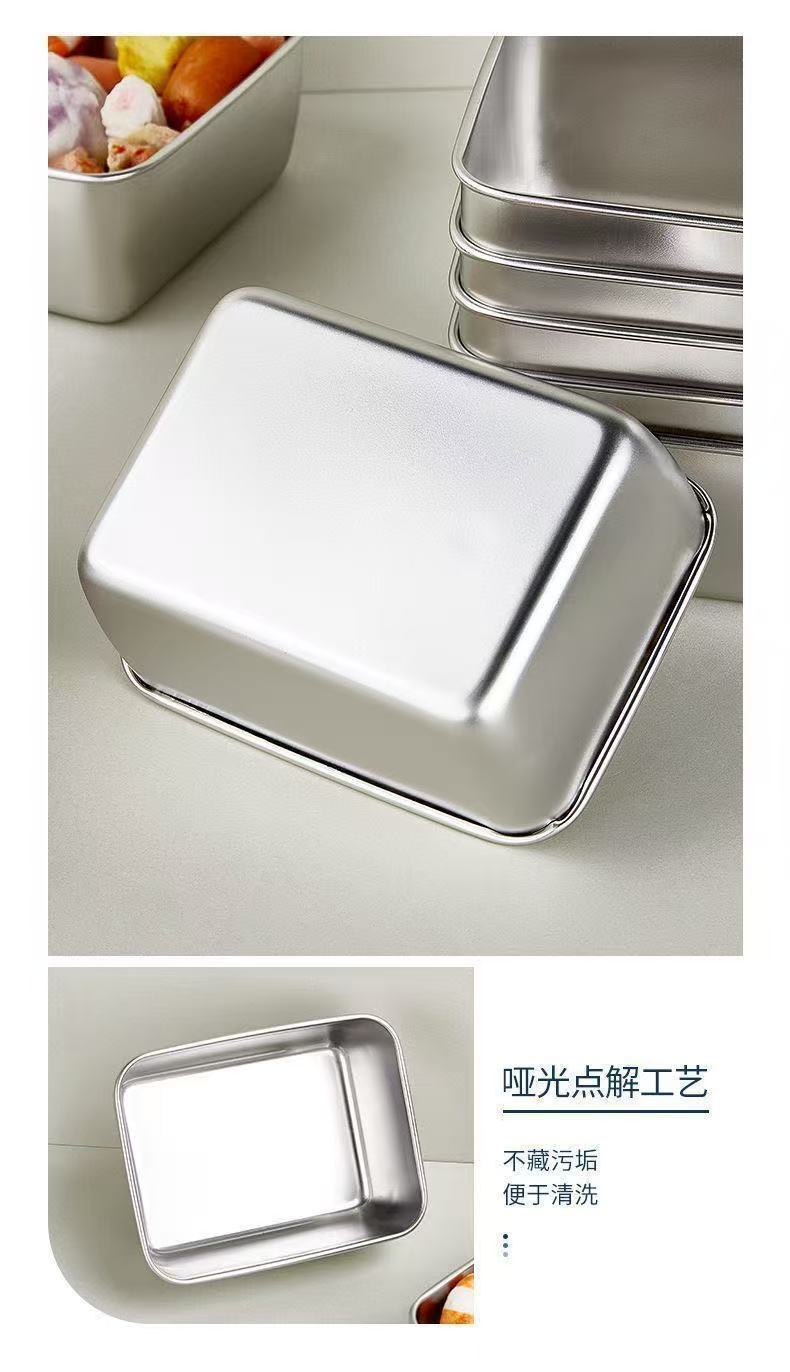 【新】不锈钢保鲜盒餐用长方形盘带盖冰箱食物纳盒冷冻盒子大容量