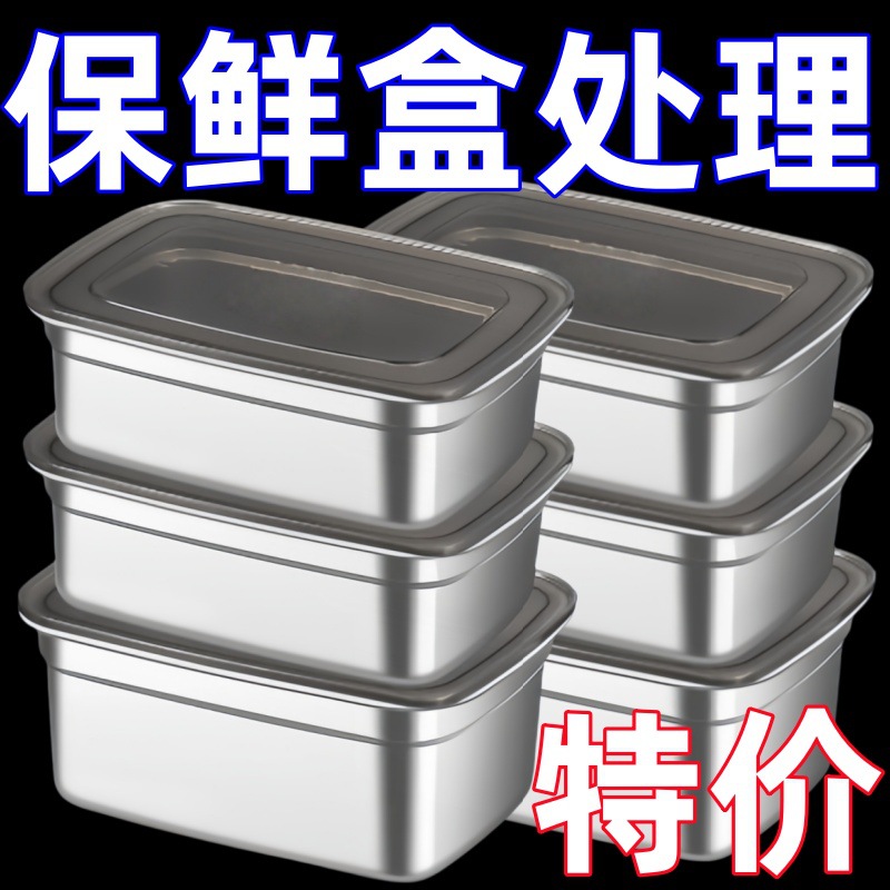 现货不锈钢保鲜盒密封盒厨房冰箱收纳储物防漏饭盒家用方形带盖
