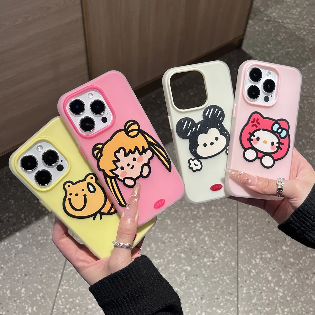 韓国風キティ猫デザインのiPhoneケース、Apple 16/17 Pro Max、iPhone 15、肌触りの良いマット仕上げ、13/14対応