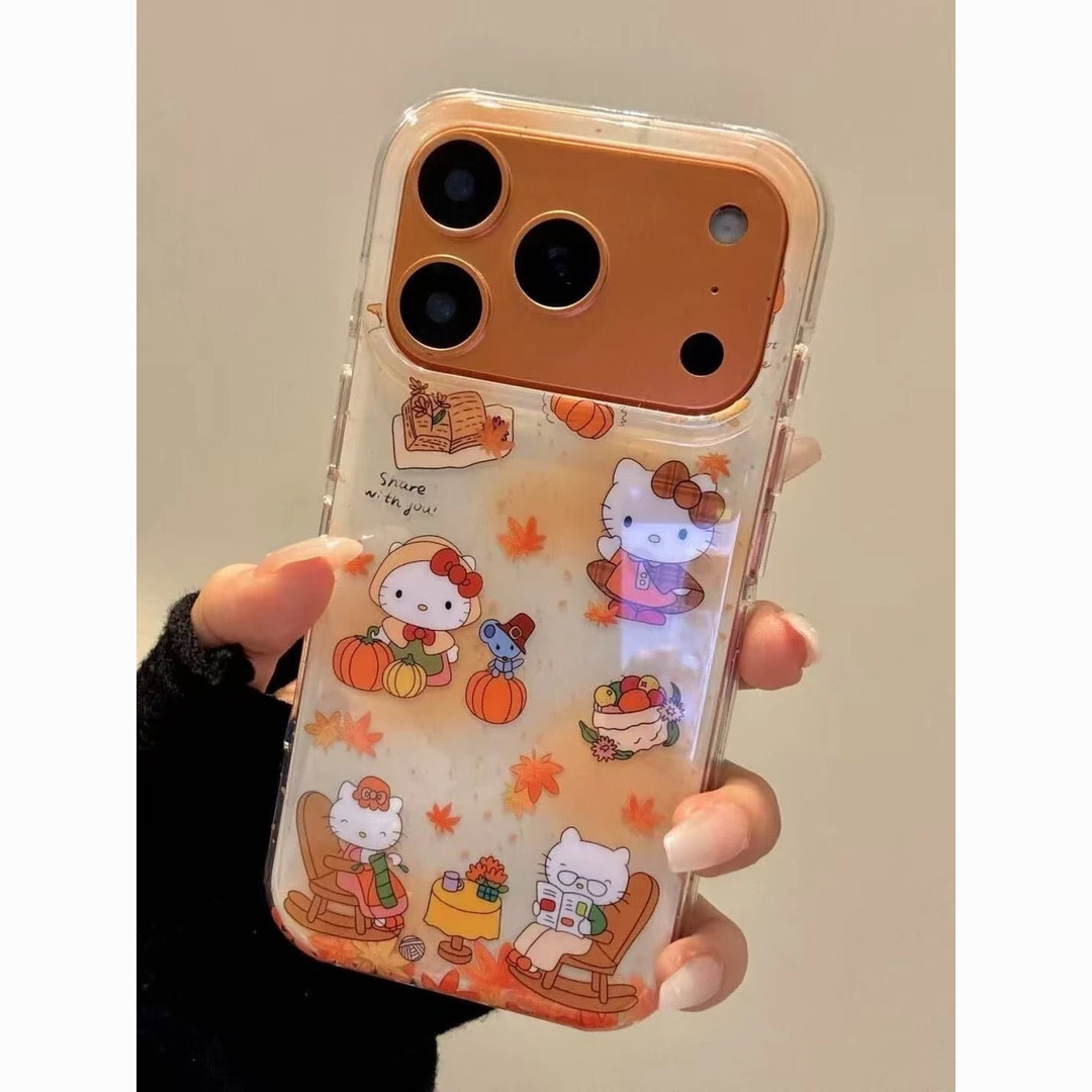 趣味秋冬南瓜凯蒂猫适用苹果17Promax手机壳IP16大孔IMD15Pro可爱