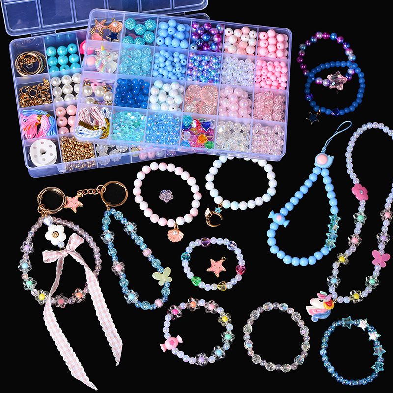 子供用ビーズおもちゃ 手作り 新年DIY素材パック 女の子用ブレスレット 知育手芸ギフト ネックレス 卸売
