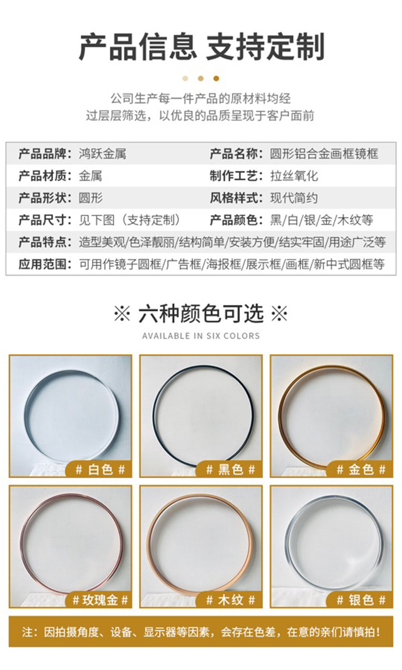 アルミニウム合金製 丸型・角型 メタルフレーム メーカー卸売 電気メッキ モダン シンプル 広告フレーム 装飾額縁 写真フレーム