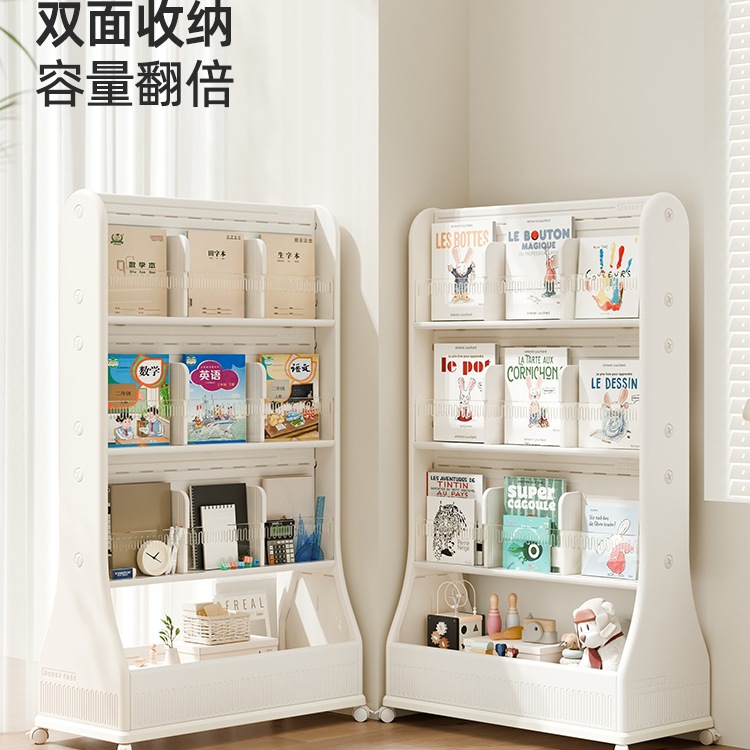 可移动收纳架儿童阅读书架绘本玩具收纳柜双面置物杂志架子