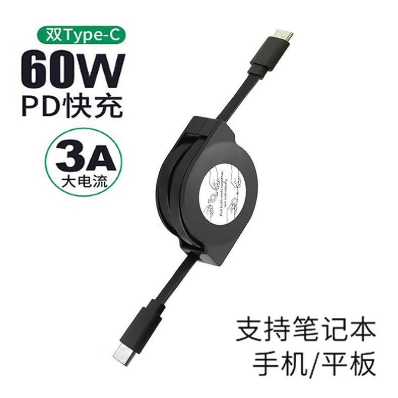 PD 急速充電 Type-c 格納式充電ケーブル 60W ノートブック 1 対 3 携帯電話データケーブル ポータブルストレージ