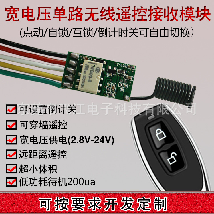 メーカー直販リモコンスイッチ3.7v/7.4v/9v/12v/24vバッテリ電源低消費電力受信モジュール