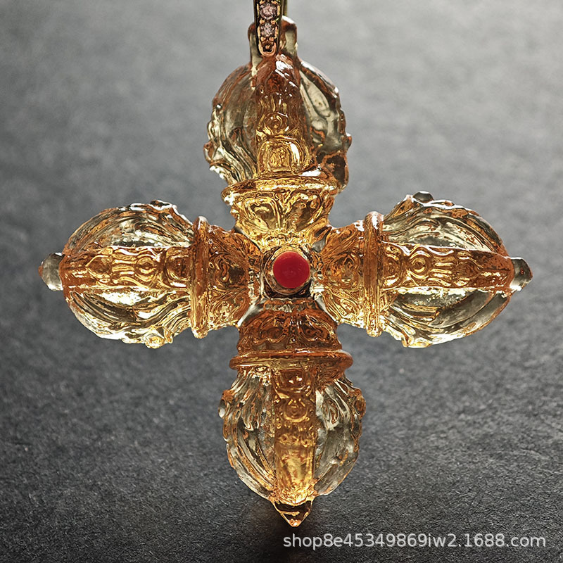 善也造物/十字金剛杵ペンダント/古法琉璃宝石運命転換男女兼用ジュエリーペンダント手作り