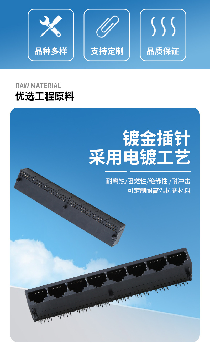 RJ45接続ネットワークソケット8P8Cプラグイン通信インターフェースネットワークケーブルネットワークポートクリスタルヘッドコネクタ
