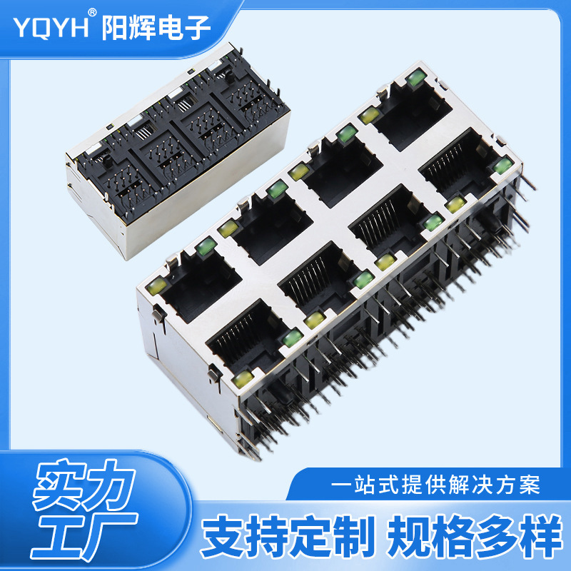 55A-8P8C1x4 ハーフパック RJ45 ネットワークソケット水平ネットワークコネクタ垂直銅シェルメスコネクタ