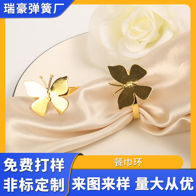 軽くて豪華な金属製の蝶のナプキンリング、高級で美しいナプキンバックル、ホテルのレストランのテーブルナプキンリング、クラブ食器