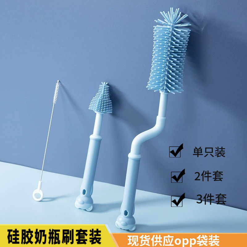 シリコン哺乳瓶ブラシ3点セット神器ブラシヘッド携帯ブラシブラシブラシブラシ新生児用品卸売り