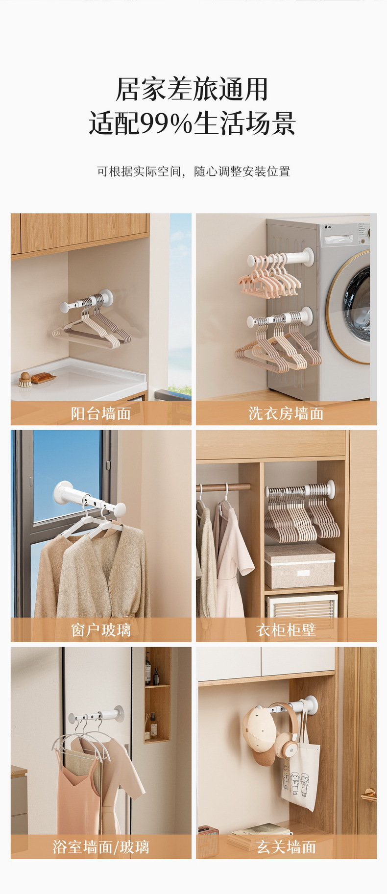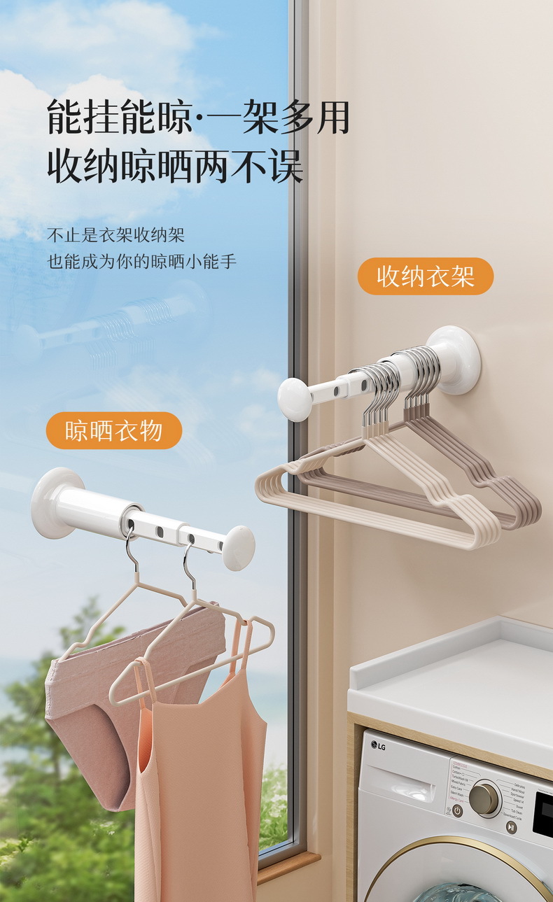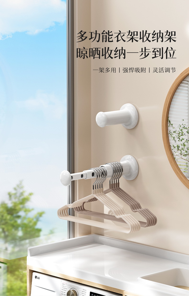 吸盤バルコニー衣類ラック収納アーティファクトパンチフリー家庭用多機能フック伸縮式衣類ラック壁収納ラック