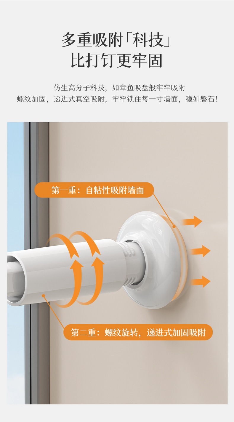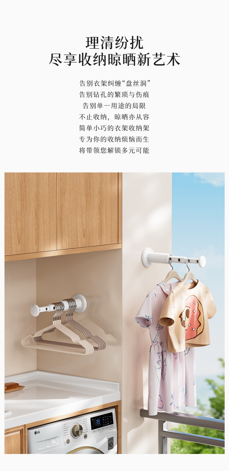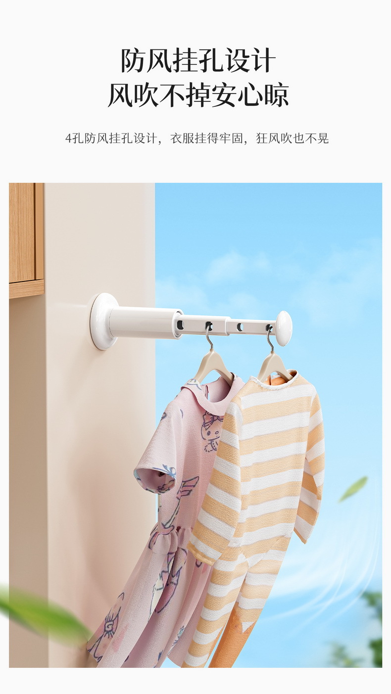 吸盤バルコニー衣類ラック収納アーティファクトパンチフリー家庭用多機能フック伸縮式衣類ラック壁収納ラック
