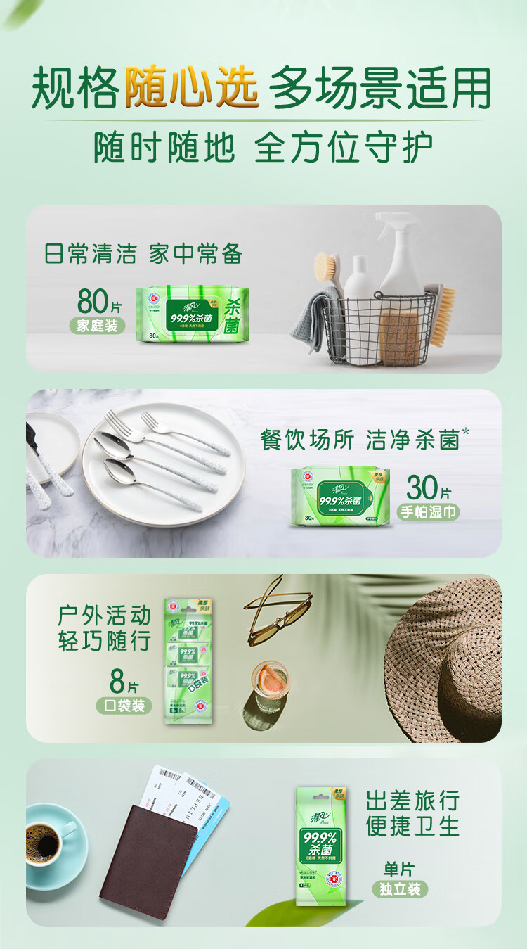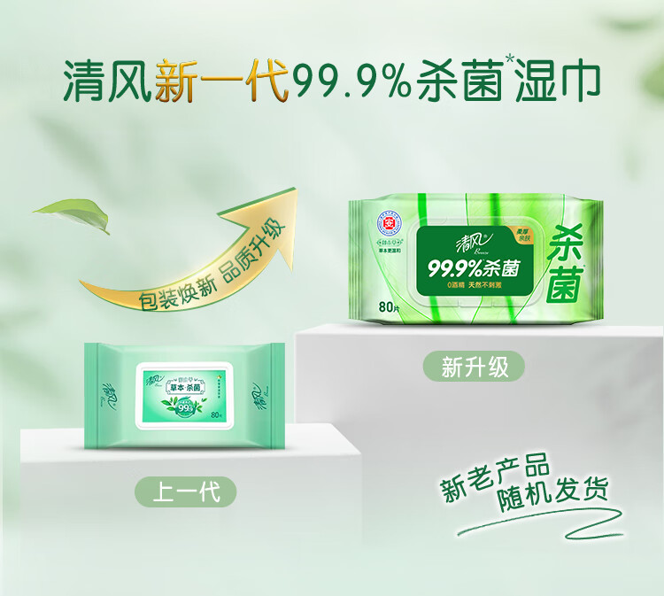 清风御本草湿巾杀菌亲肤无刺激抽取式湿巾80抽大包家用学生实惠装