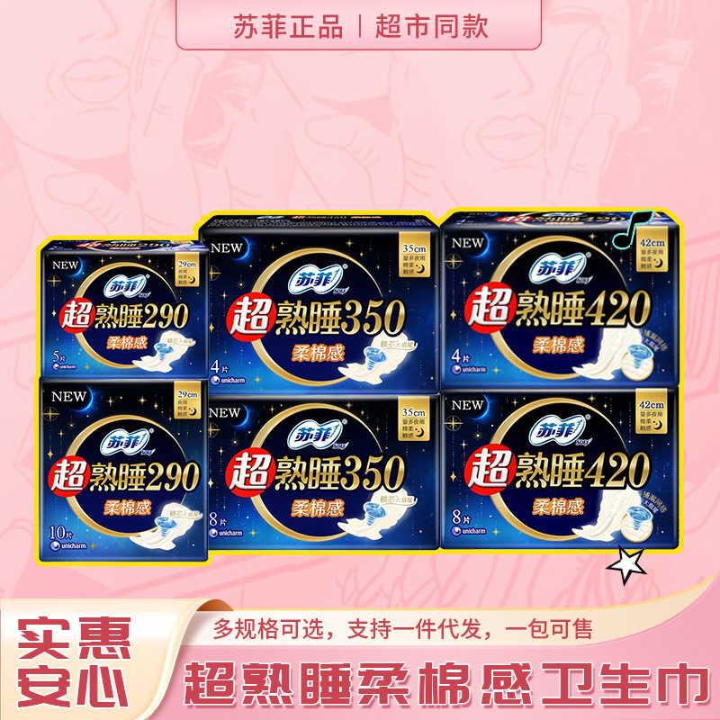 ソフィーは熟睡して柔らかい綿感の生理用ナプキンを持っています。