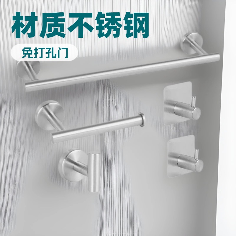 クロスボーダーステンレス5点セットバスルームタオルバータオルラックトイレットペーパーホルダートイレ穴なしフック衣類