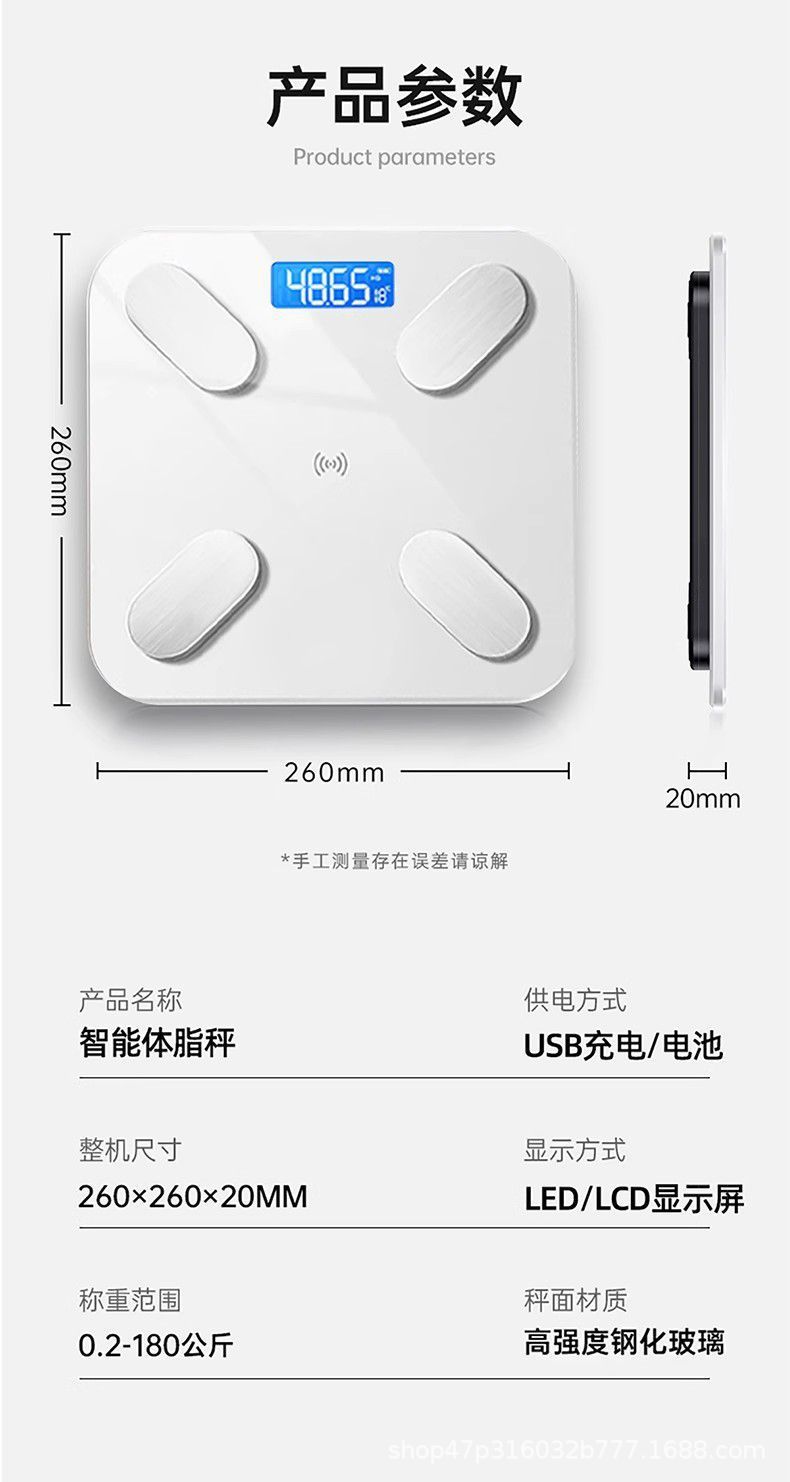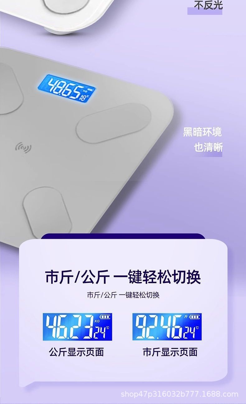 クロスボーダー輸出品質人体知能体重計女性ダイエット家庭用小型充電人体質電子秤