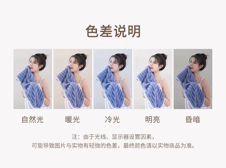 速乾性のある厚手の無地フェイスタオル、純綿コーラルベルベットのドライヘアタオル、吸水性があり毛羽落ちない、入浴や髪拭きに。