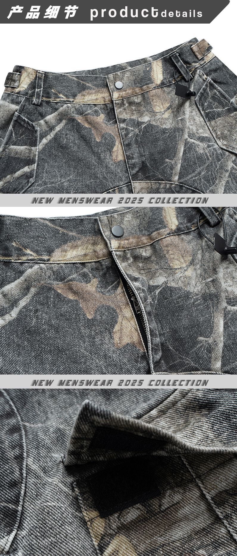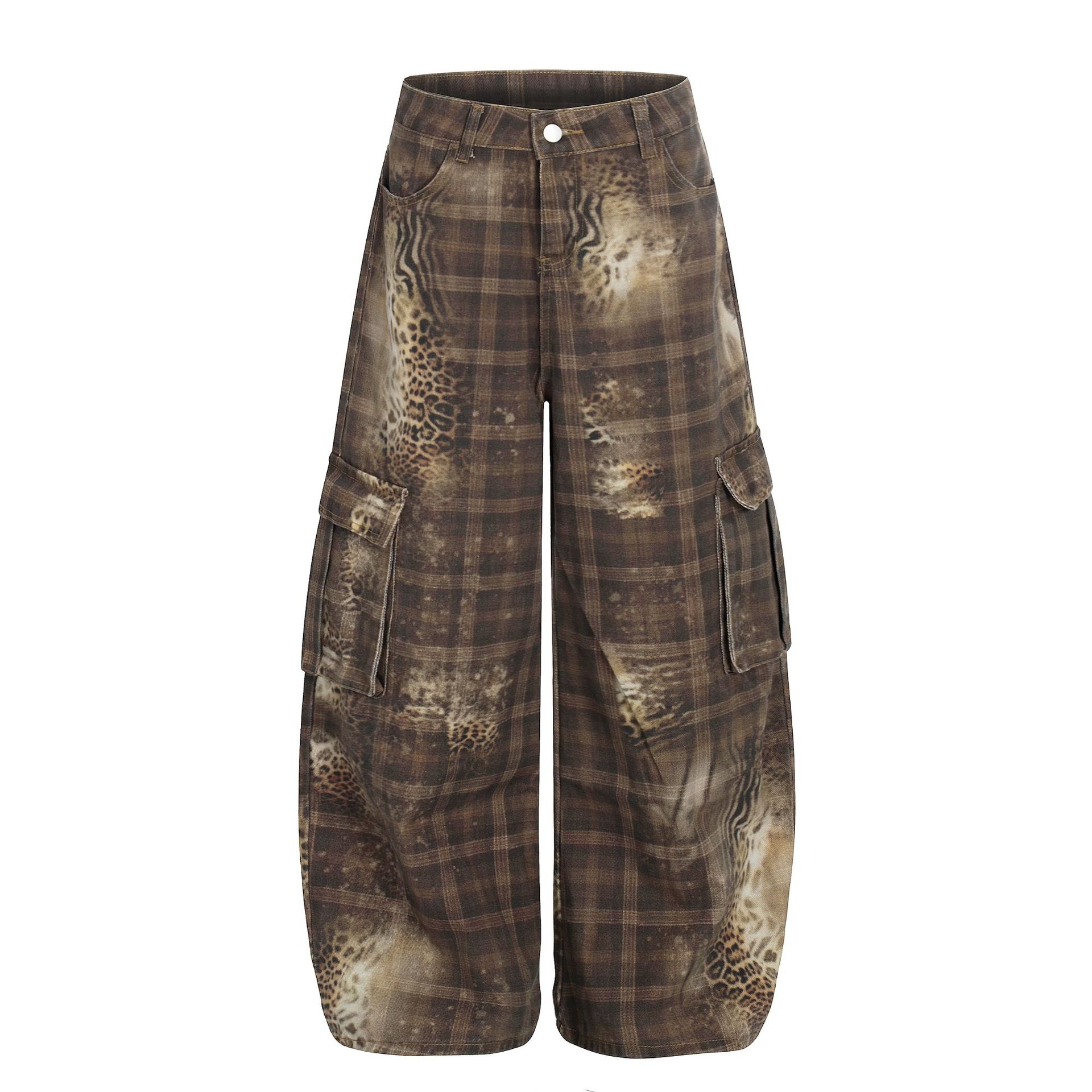 启宏衣社美式复古设计感扎染弯刀多口袋秋冬宽松个性男女休闲长裤