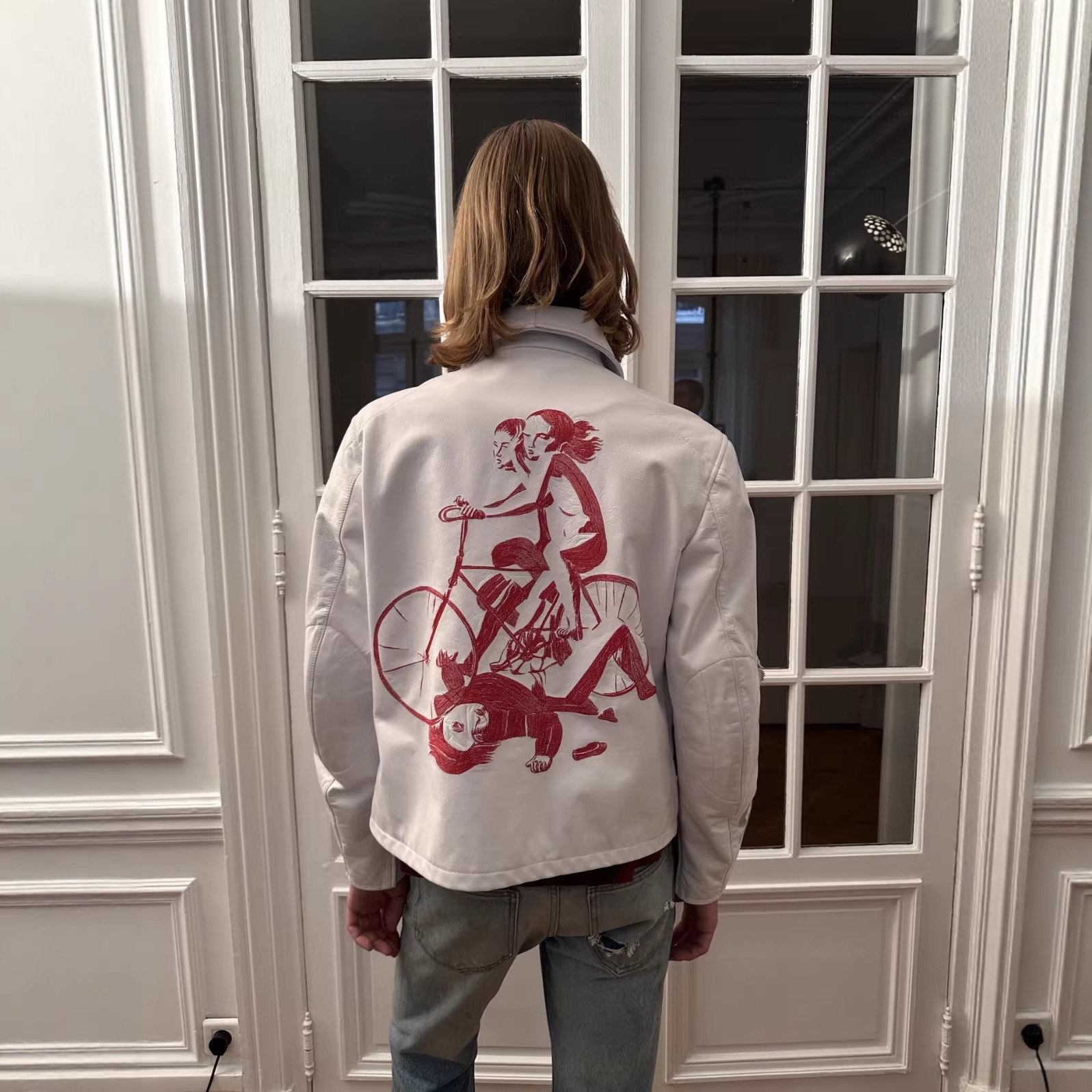 ERD GRJKD忧郁的富二代25SS小羊皮自行车机车做旧破坏皮衣夹克潮