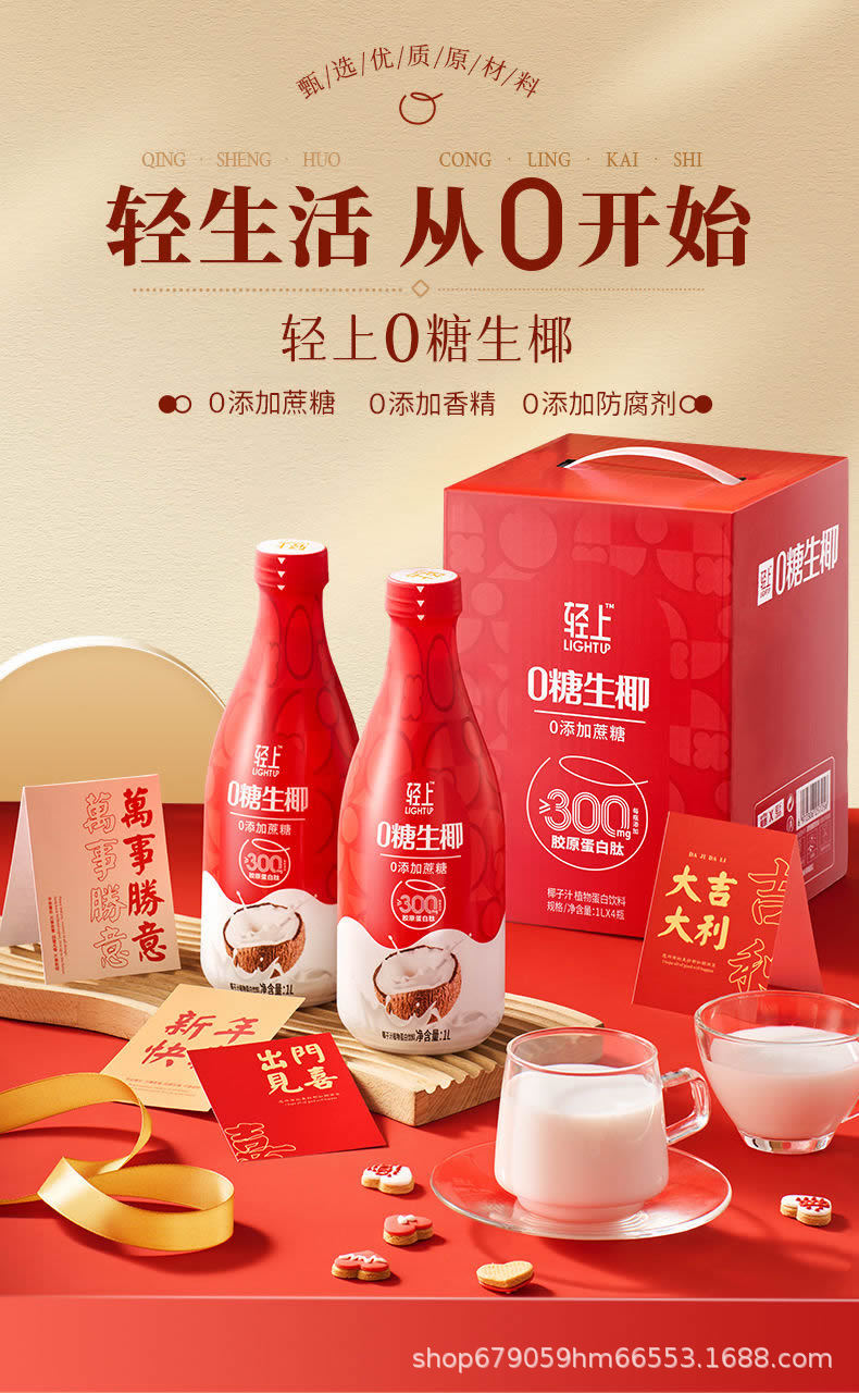1L轻上0糖生椰原味(300胶原1箱*2瓶)红色版