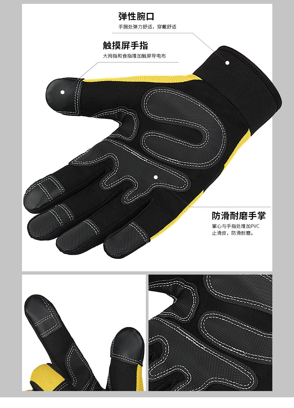 クロスボーダー超繊維機械手袋全指タッチパネル自動車修理倉庫運搬園芸園林作業労働保護手袋