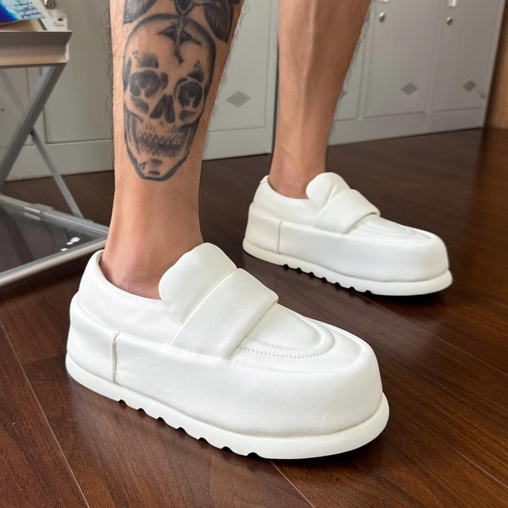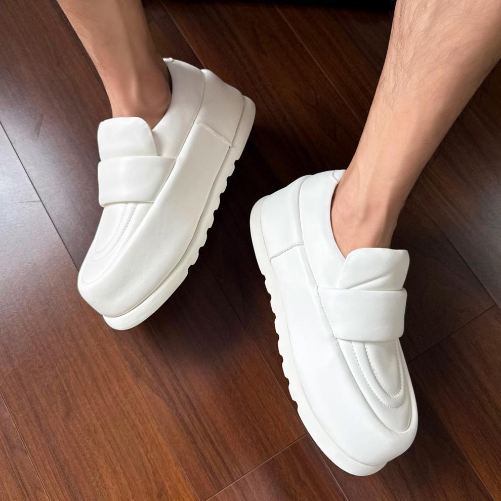本格的な高級紳士靴、高級白パンシューズ、メンズ厚底プラットフォームシューズ、ヨーロッパ本革スリッポンローカットシューズ、トレンド