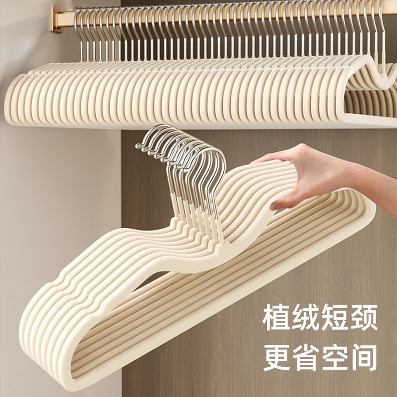 滑り止め無痕植毛ハンガー乾湿両用ハンガー家庭用クローゼット収納ハンガー衣類ハンガー