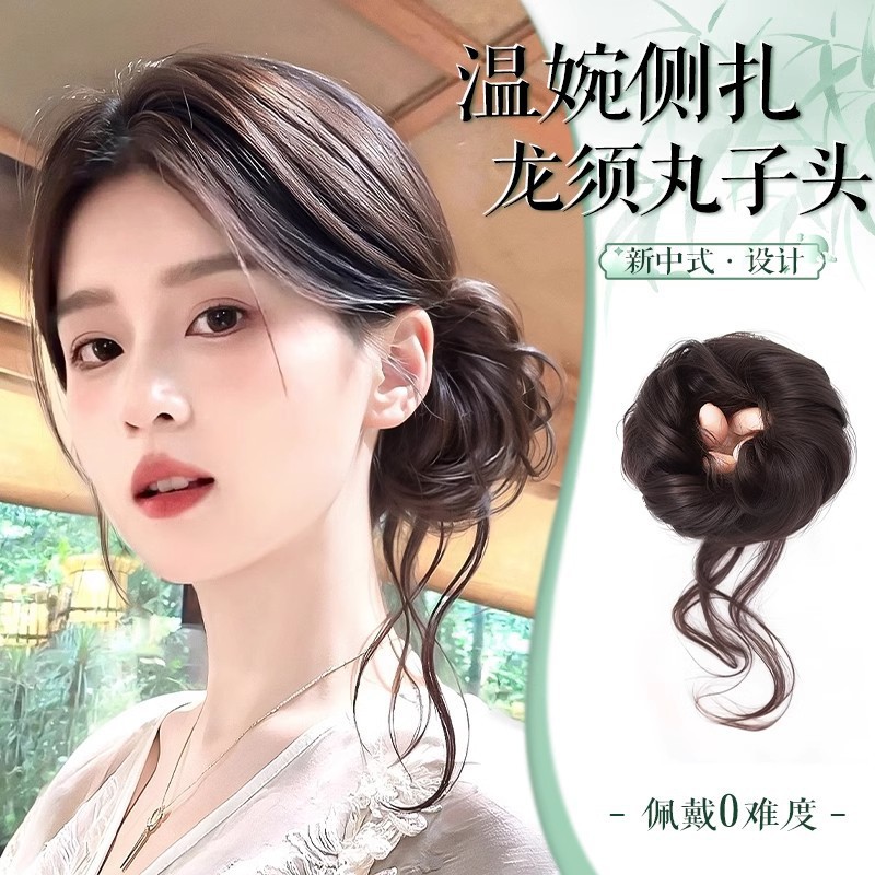竜須の団子の頭のかつらの女性の新しい中国式の古風な髪は高低ができて自然なふわふわしているつぼみのかつらの髪の輪を刺します。