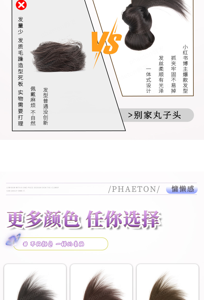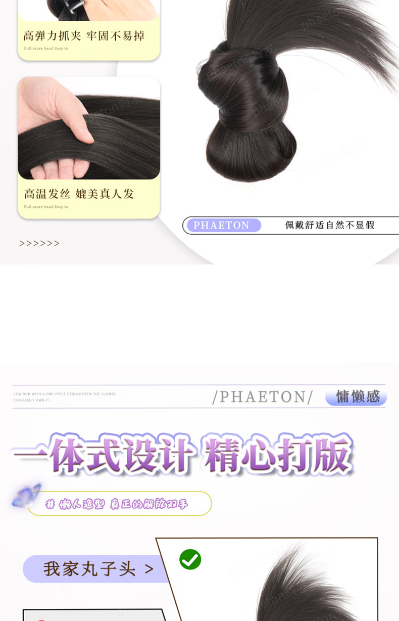 丸子のかつらの女性の怠惰な感じはつぼみの頭の偏平な頭の専用の髪をつかんで、旺盛な後頭部のかつらの髪の輪を包みます。