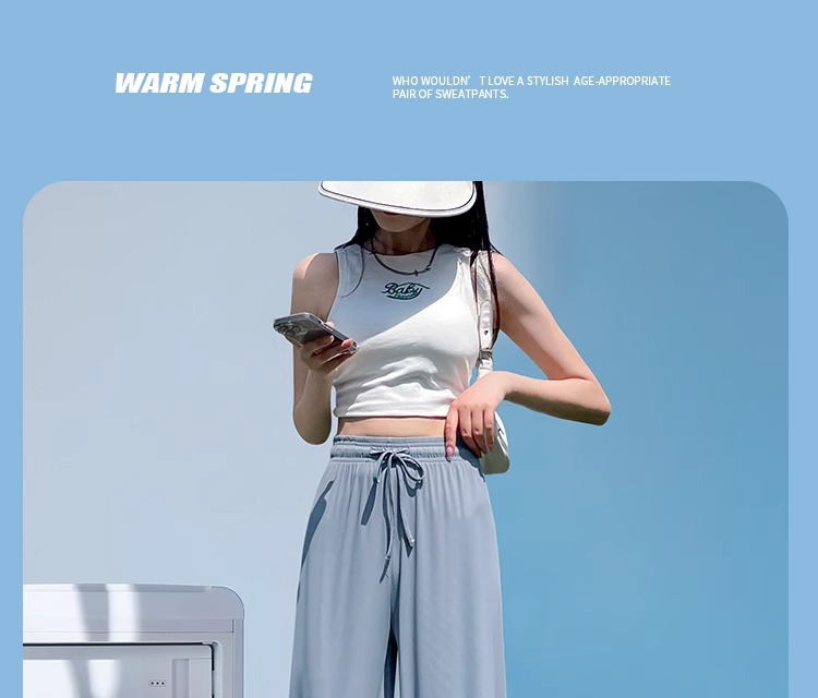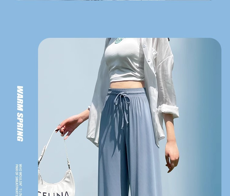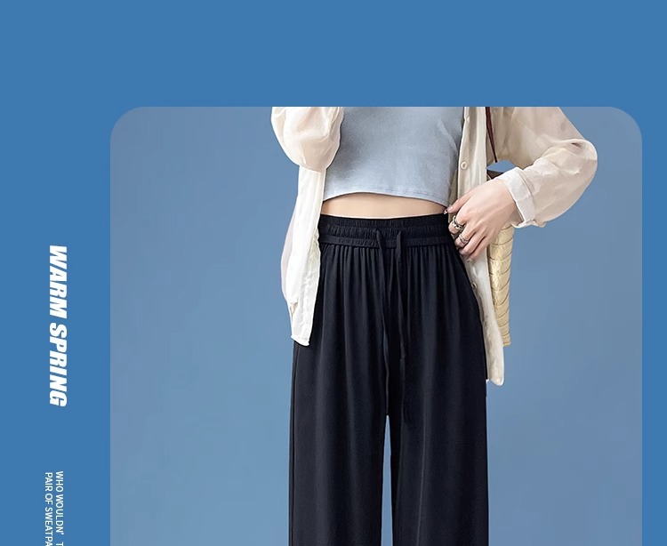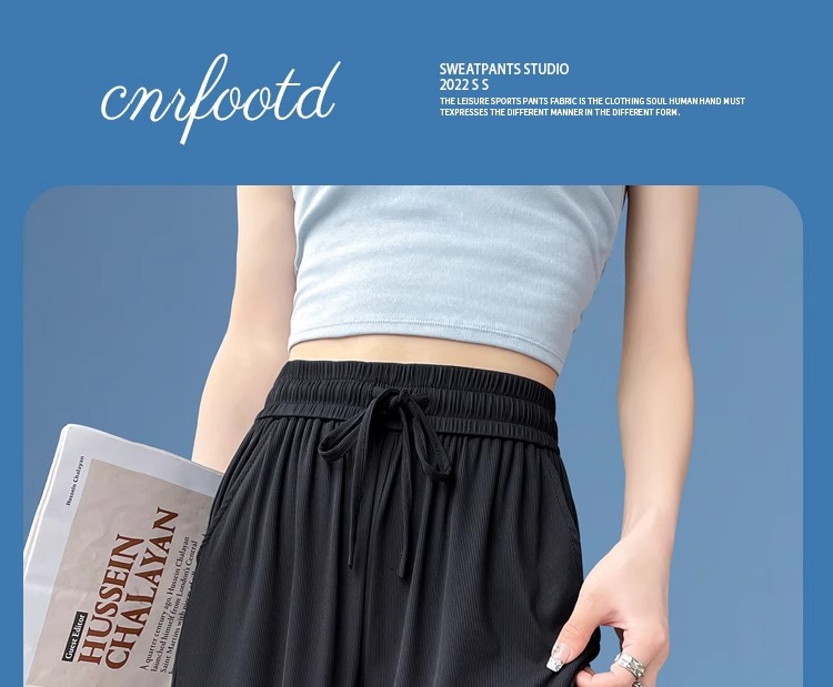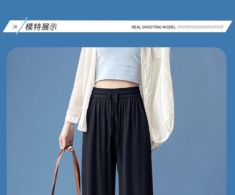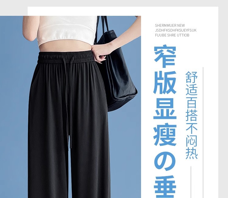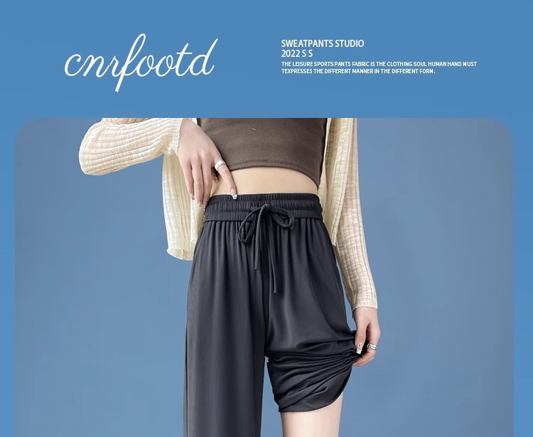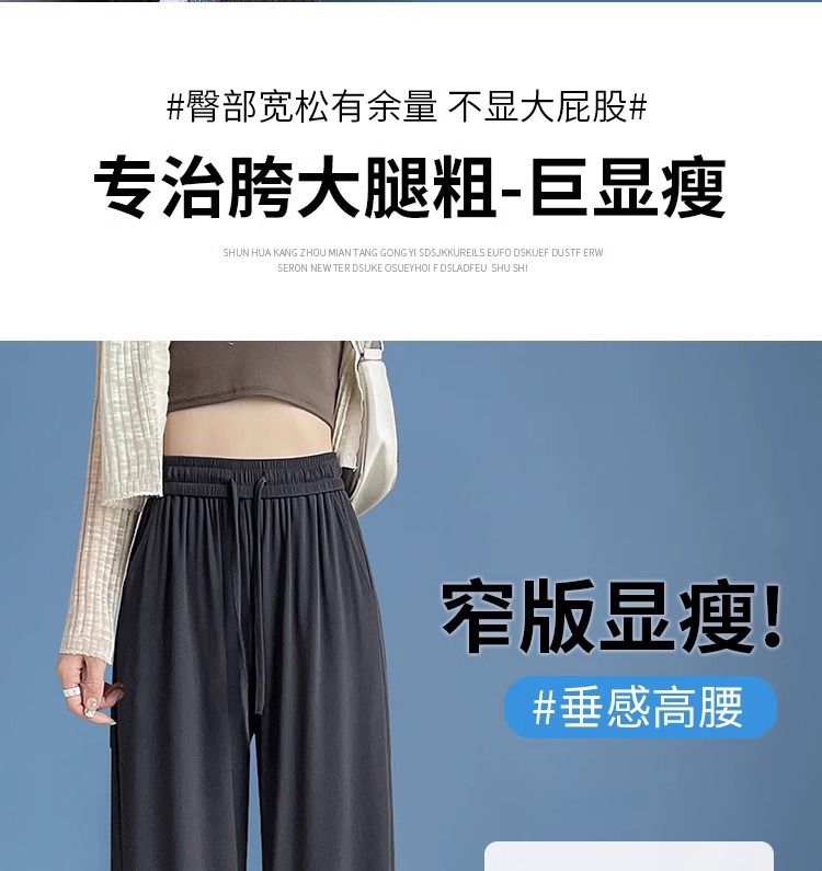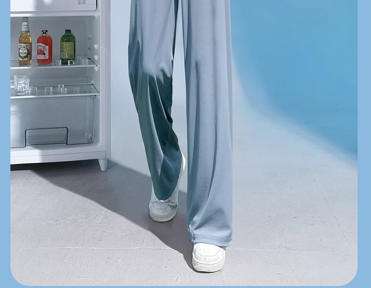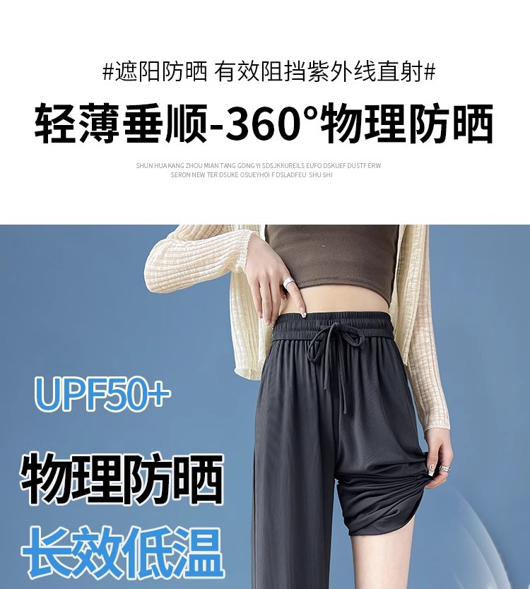 夏の薄いタイプの防蚊日焼け止めのズボンの氷の糸の広い足のズボンの女性の垂れ下がった感のゆったりしているストレートのカジュアルなズボンのアンドロメダの冷たいズボン