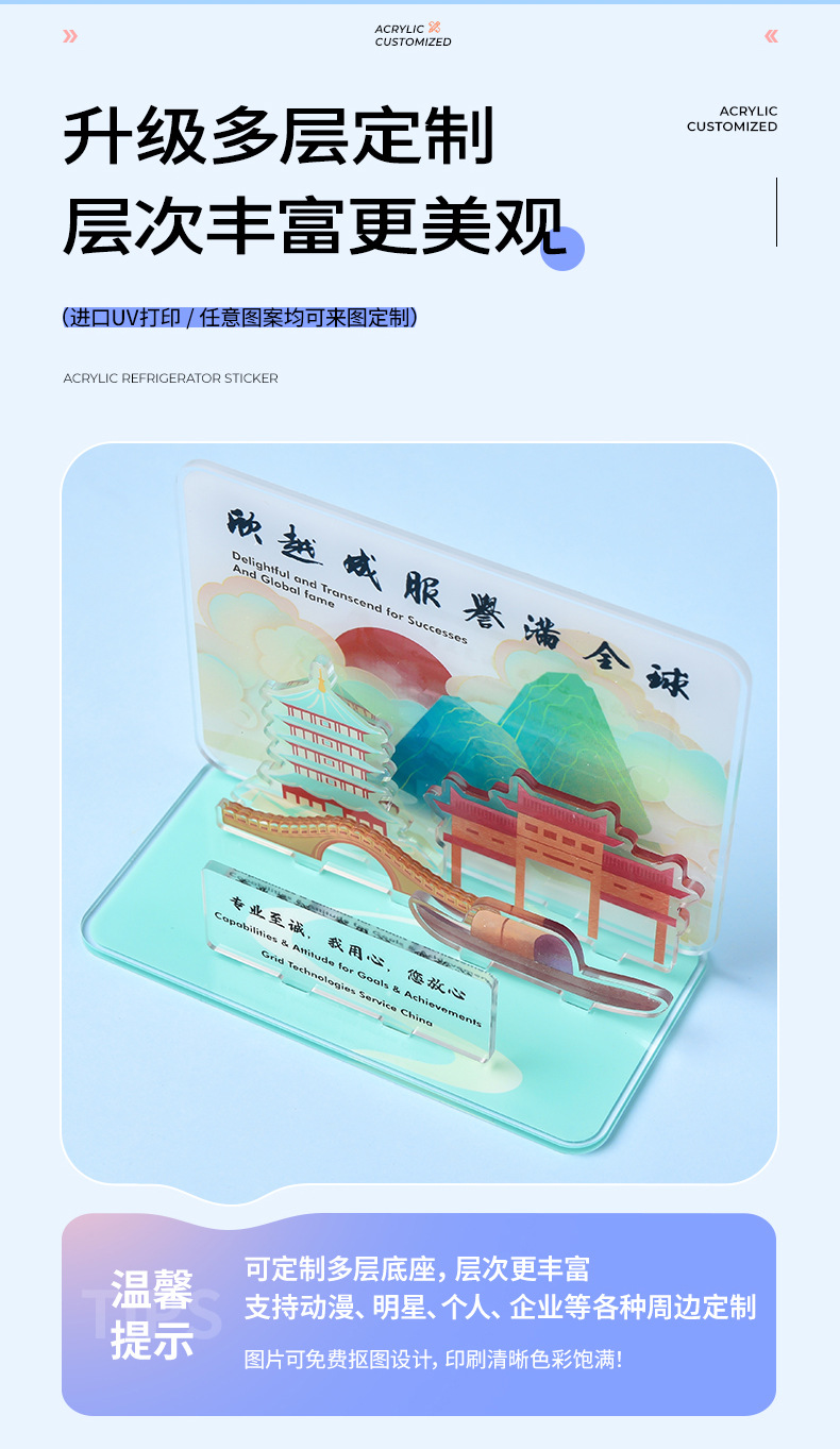 アクリル冷蔵庫マグネット カスタム文化創意製品 都市:成都、威海、西安、煙台、景徳鎮、山西 ディップジェル