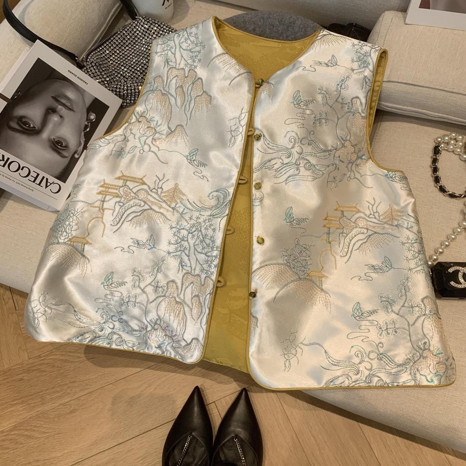 2025年早春国風馬甲春秋金復古盤留め馬甲高級片面ジャカード新上着