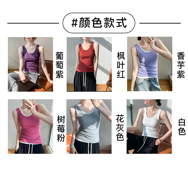 紫のキャミソールを着ています。女性2025夏の新型セクシーな低襟の鎖骨に工字の上着を着ています。