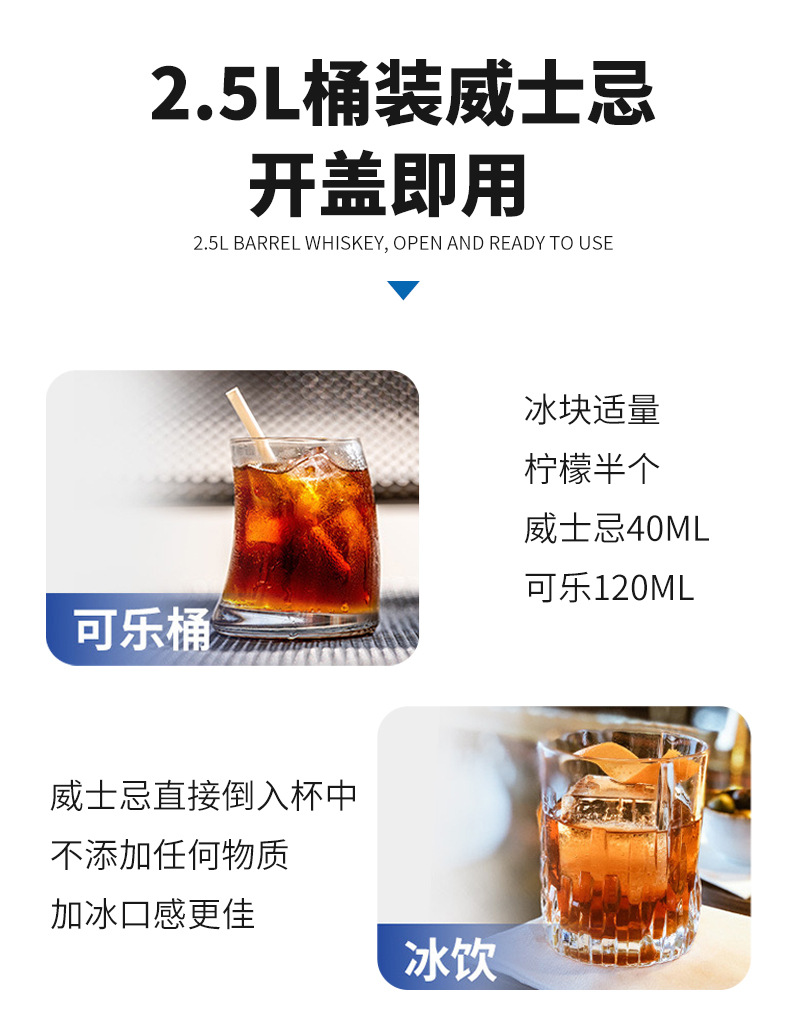樽入りウイスキー2500ml、コーラ調製用樽、ナイトクラブ、バー、KTV、テイクアウト、バーテンダー用ベース酒、40度、バルク輸入酒