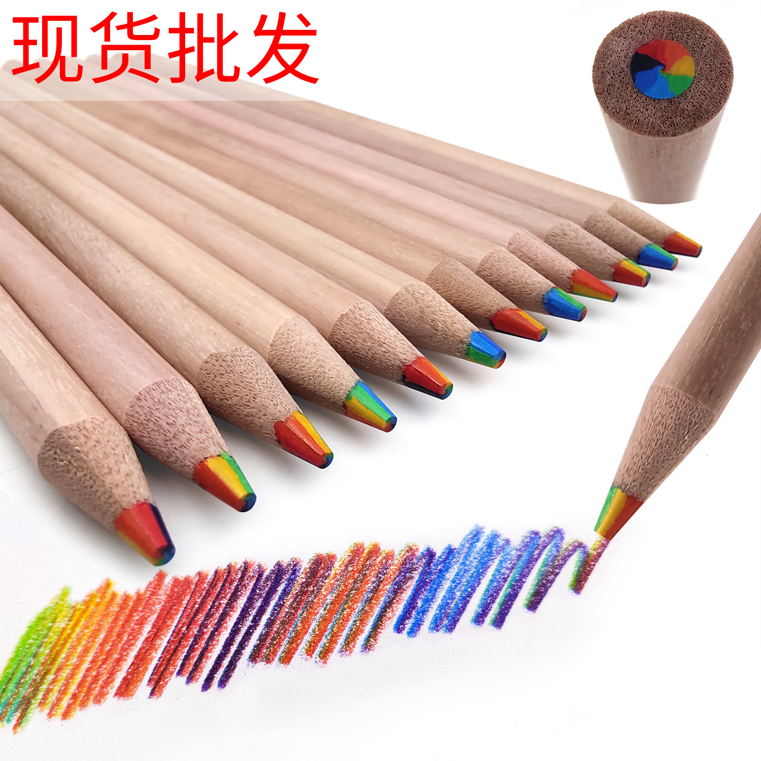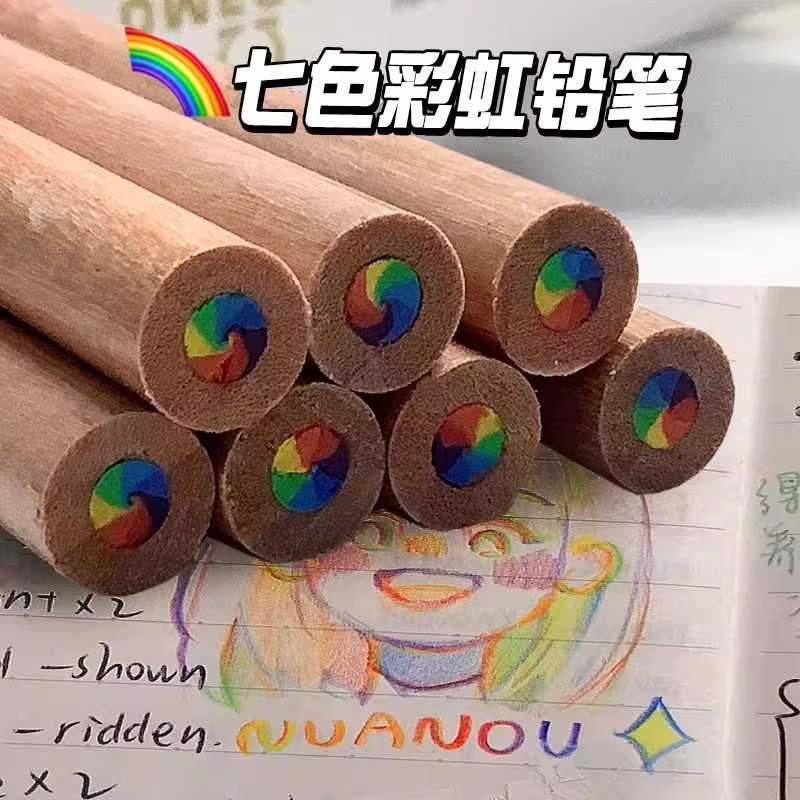 クロスボーダー原木7色芯レインボーペン多色芯グラデーションカラー鉛筆七彩創意混色魔幻彩鉛