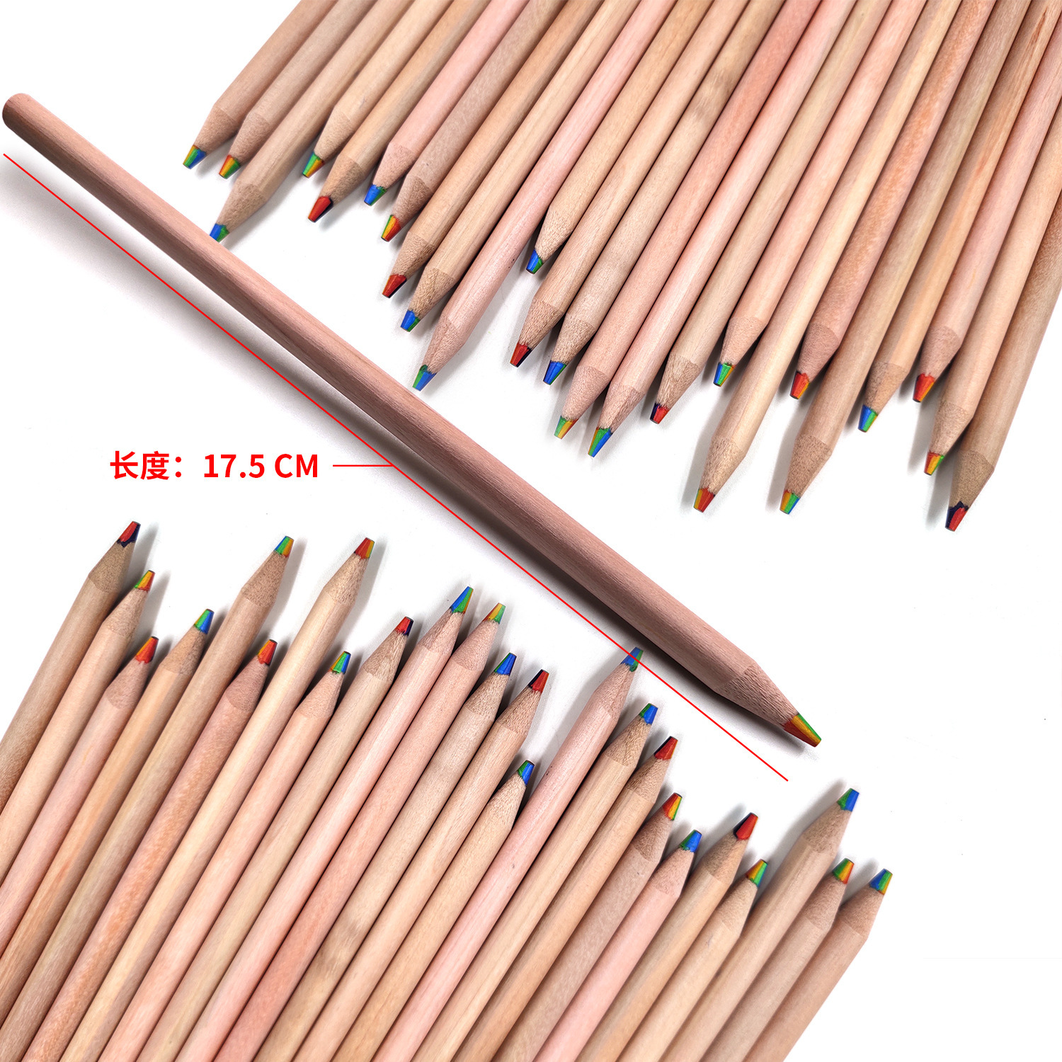 跨境供货原木七色同芯彩色铅笔爆品彩虹铅笔儿童绘画3.3芯批发