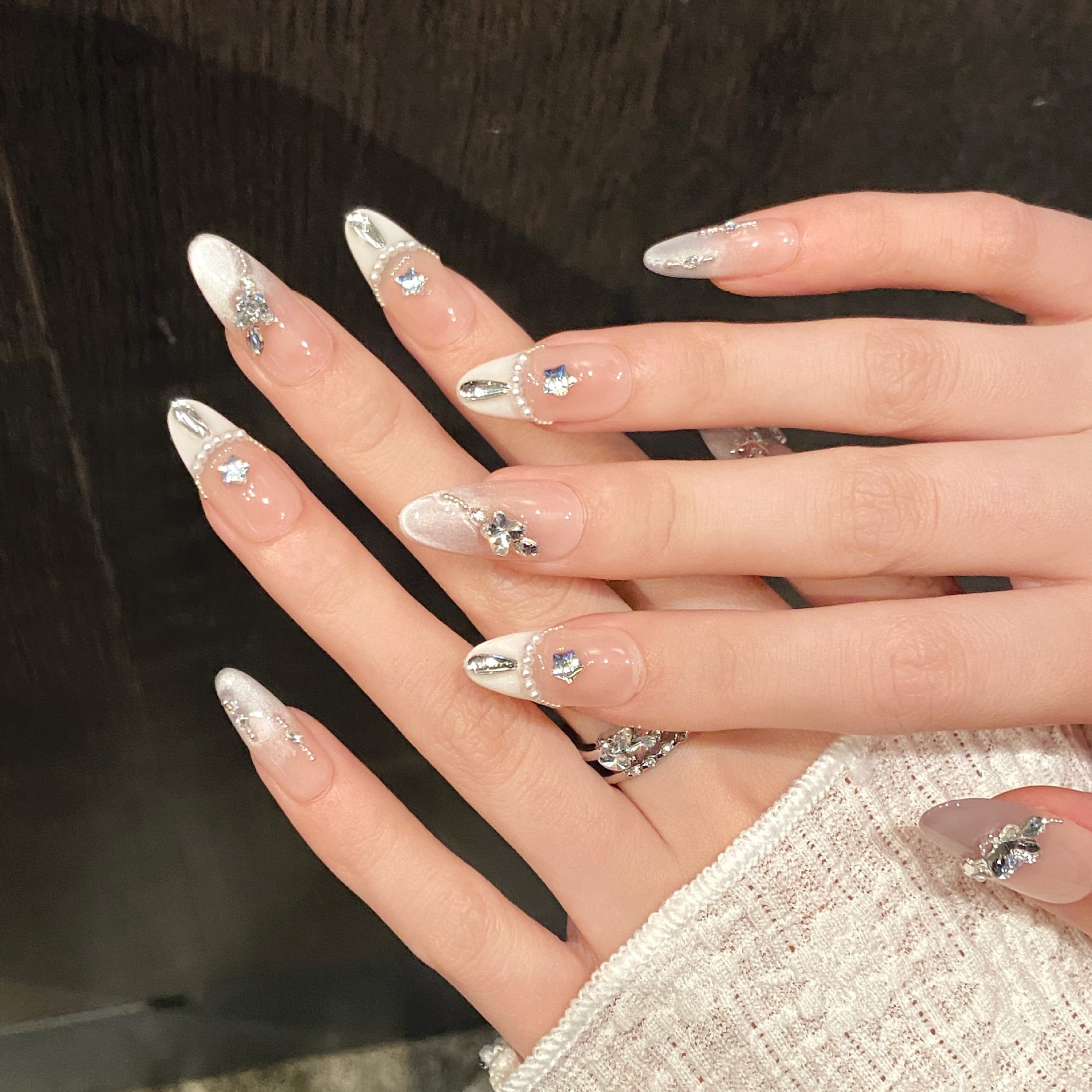 艺禾原创【裸钻柔光】粉裸渐变钻饰穿戴甲轻奢闪钻精致温柔美甲片