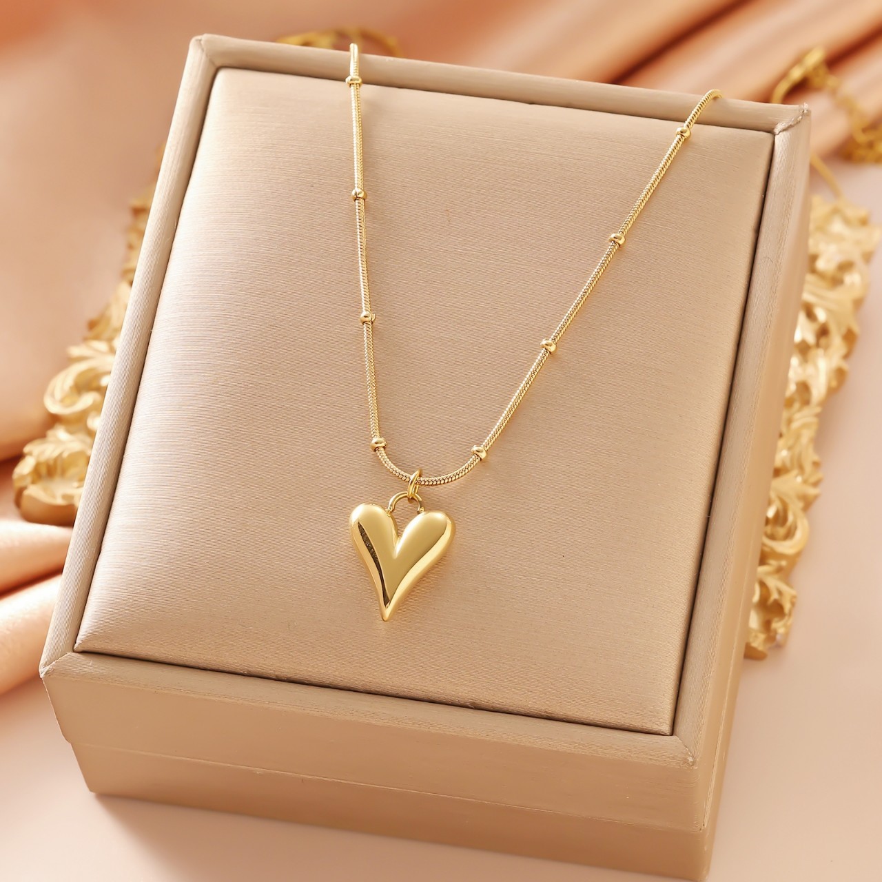 小金心形吊坠项链女轻奢锁骨链时尚百搭高级感ins风锌合金工厂