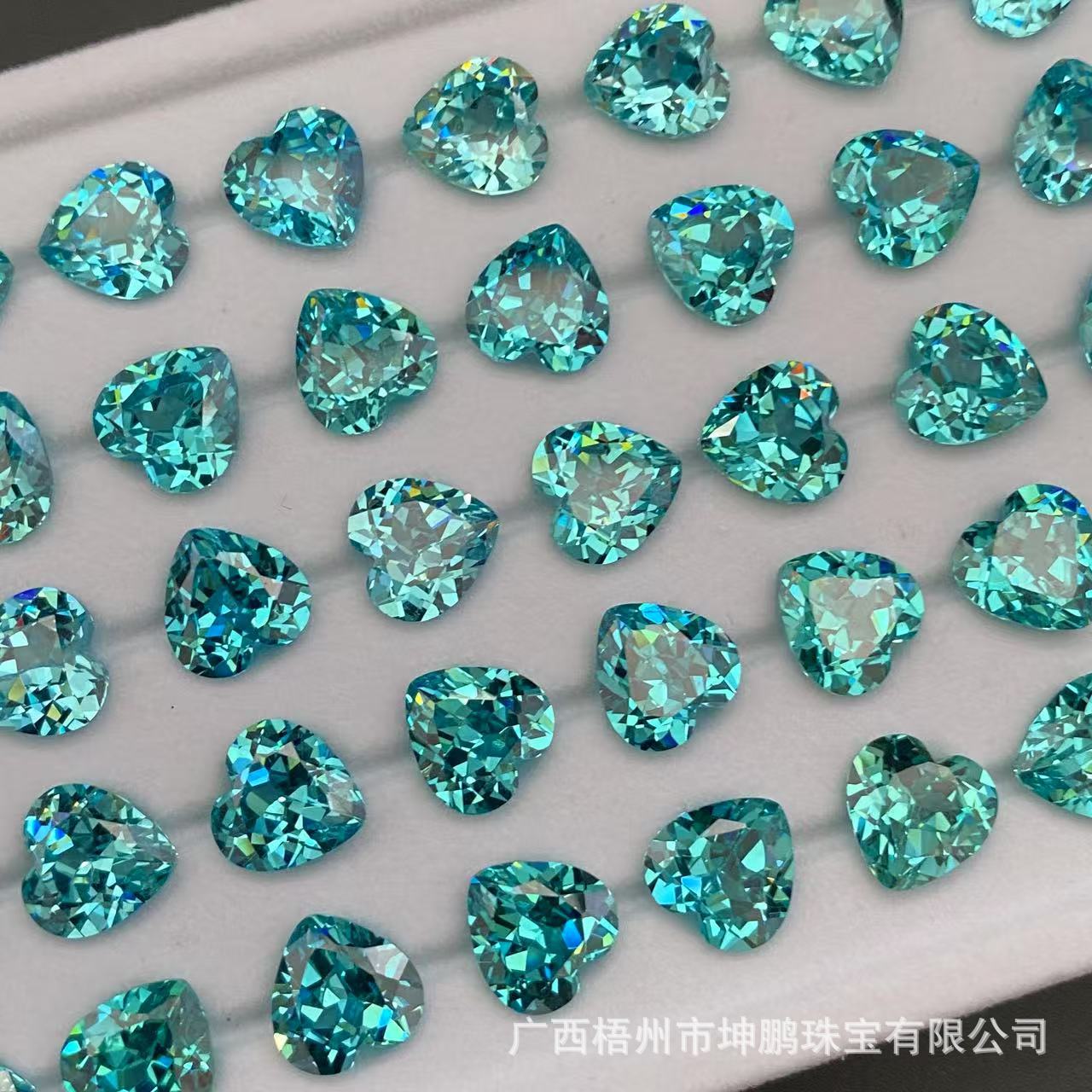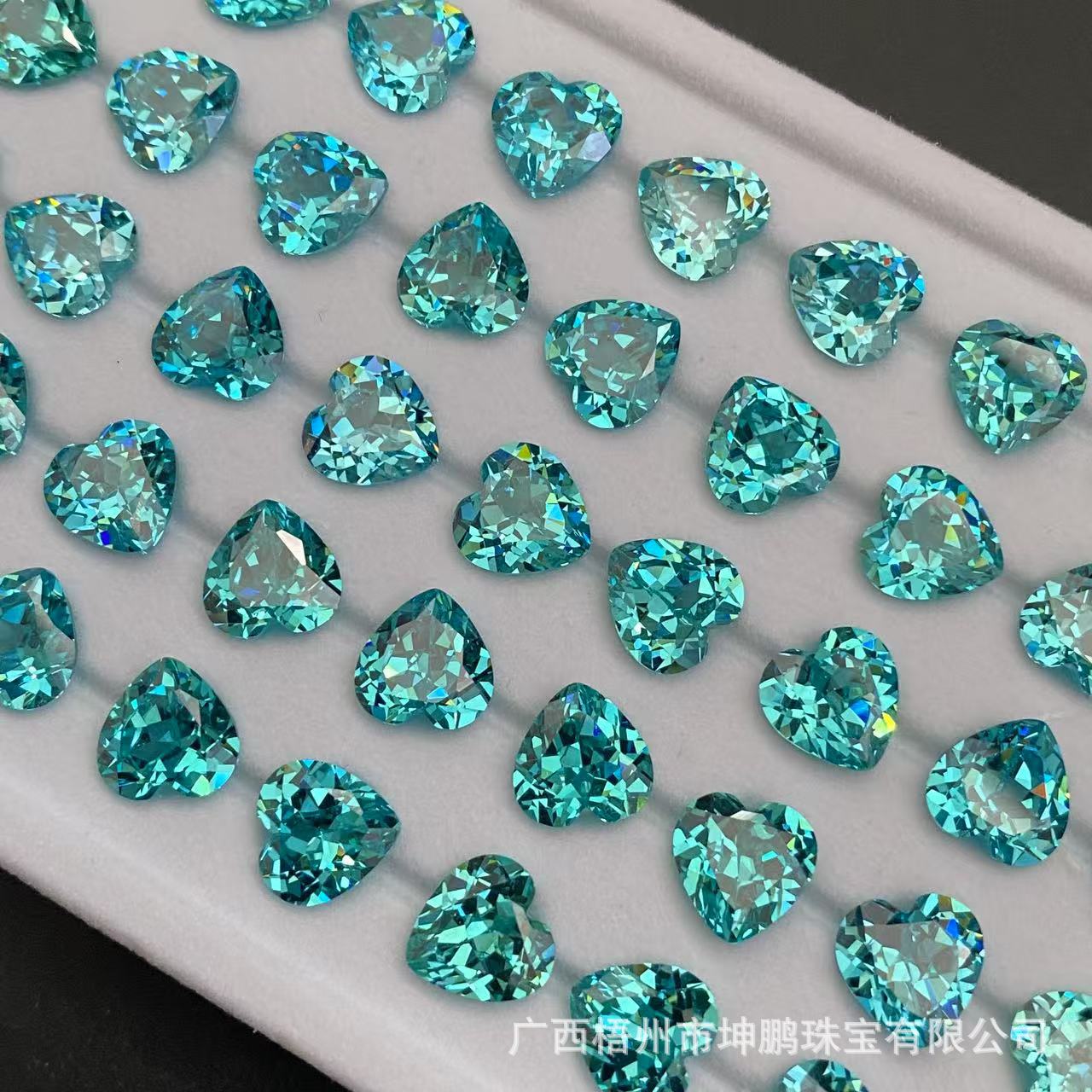 源工場パライバ碧璽戒面ネオン青緑ハート形裸石愛カット欧米風宝石
