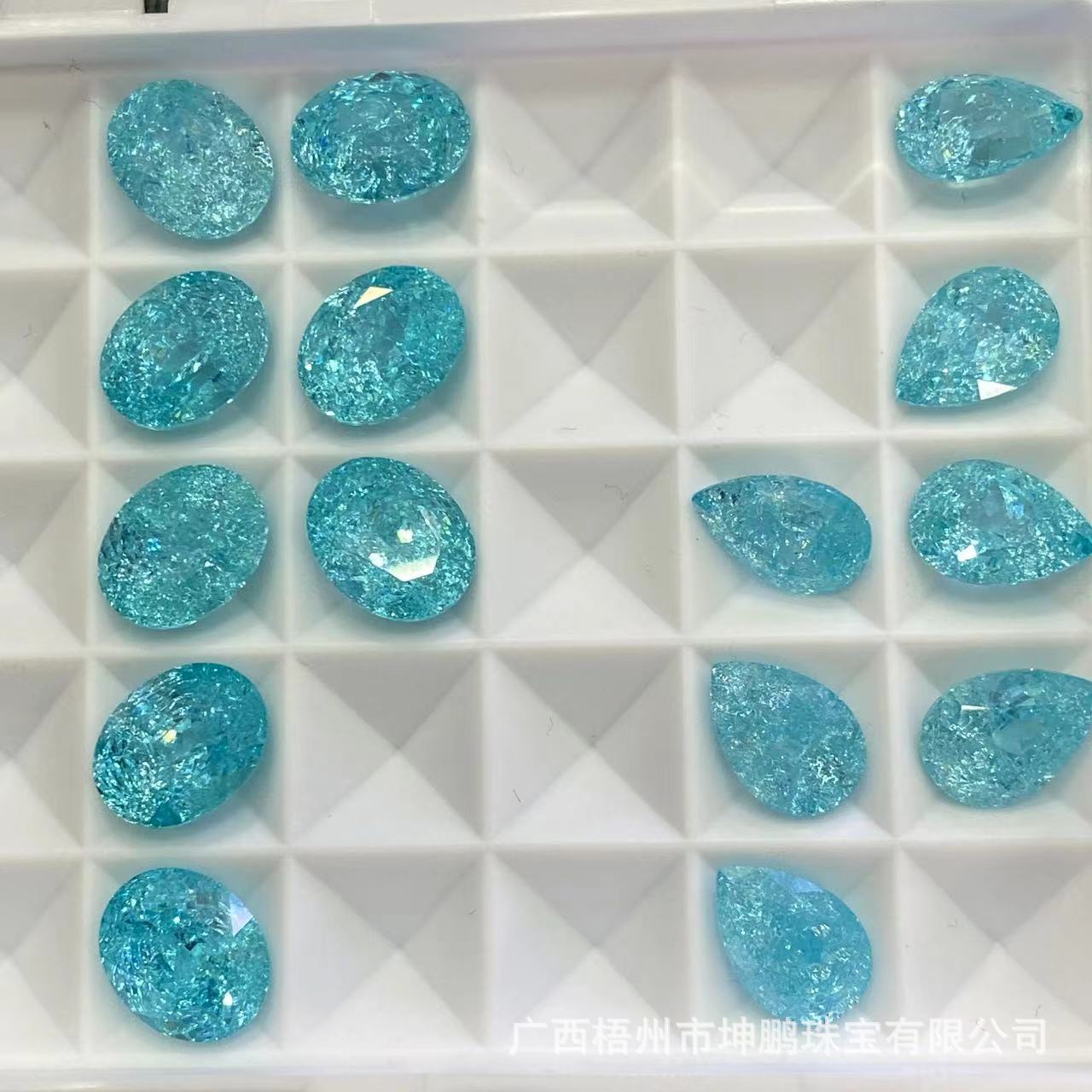 実験室育成砕氷裂きパライバ梨形卵形ネオンブルー育成合成トルマリン碧璽裸石