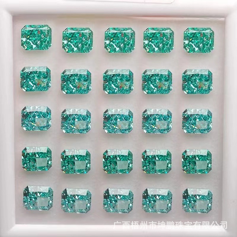 源工場パライバ氷花カット卵形長方形面取り裸石戒面ネオン青緑宝石