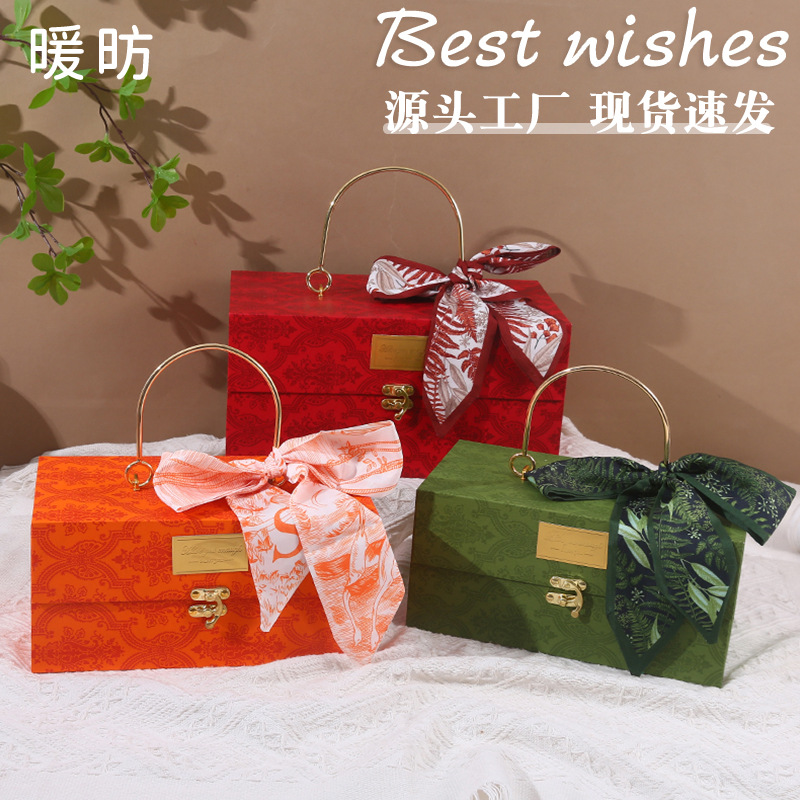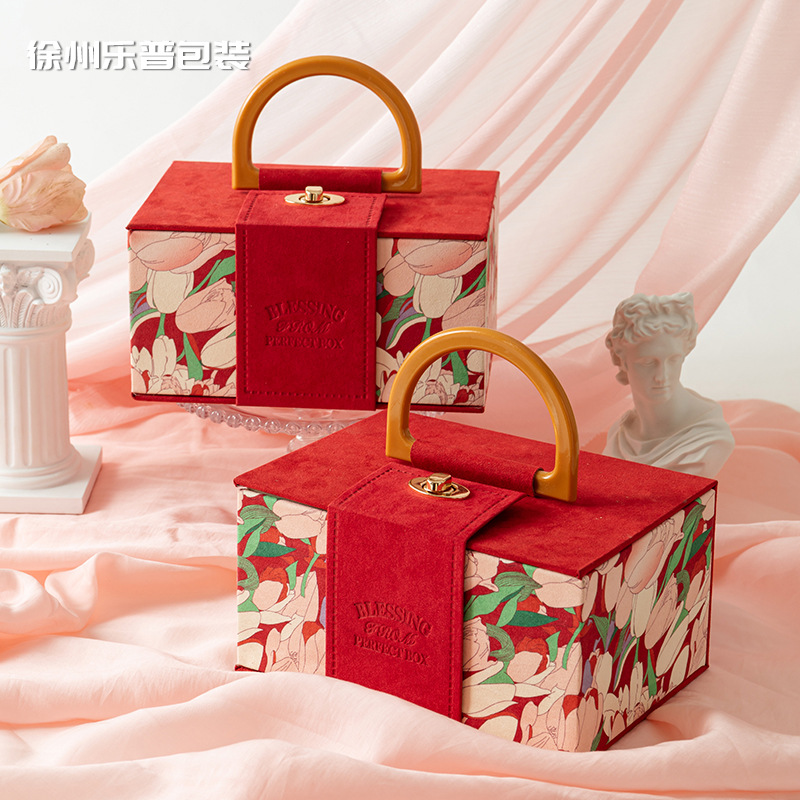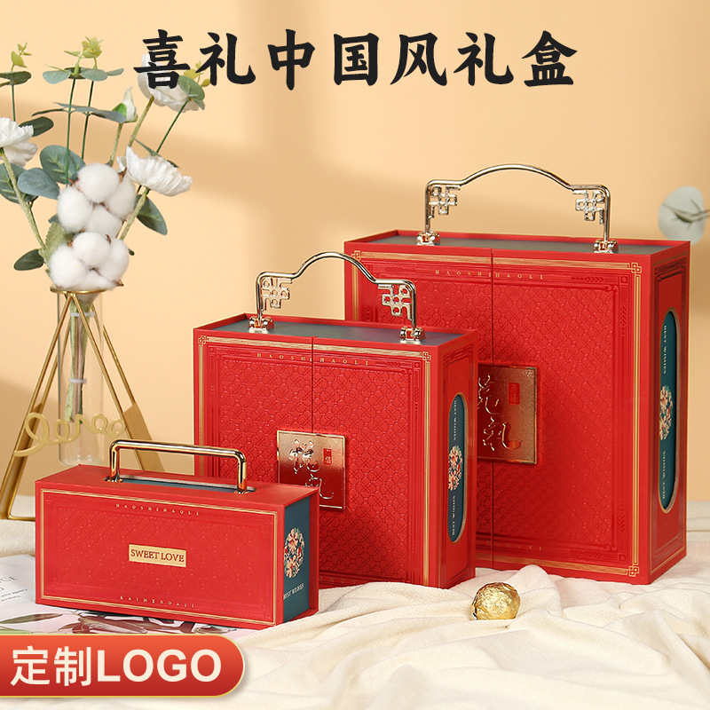 2025新型伴手礼箱精選磁気吸引蓋箱金属取っ手大赤色結婚祝い礼箱包装