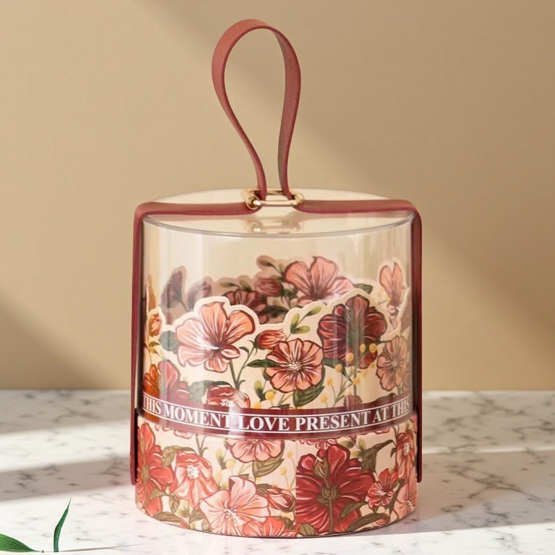 高級な花のベルトの丸い桶の軽い豪華なアクリルの婚約の結婚の喜糖の箱の贈り物の包装箱の花嫁の贈り物の箱