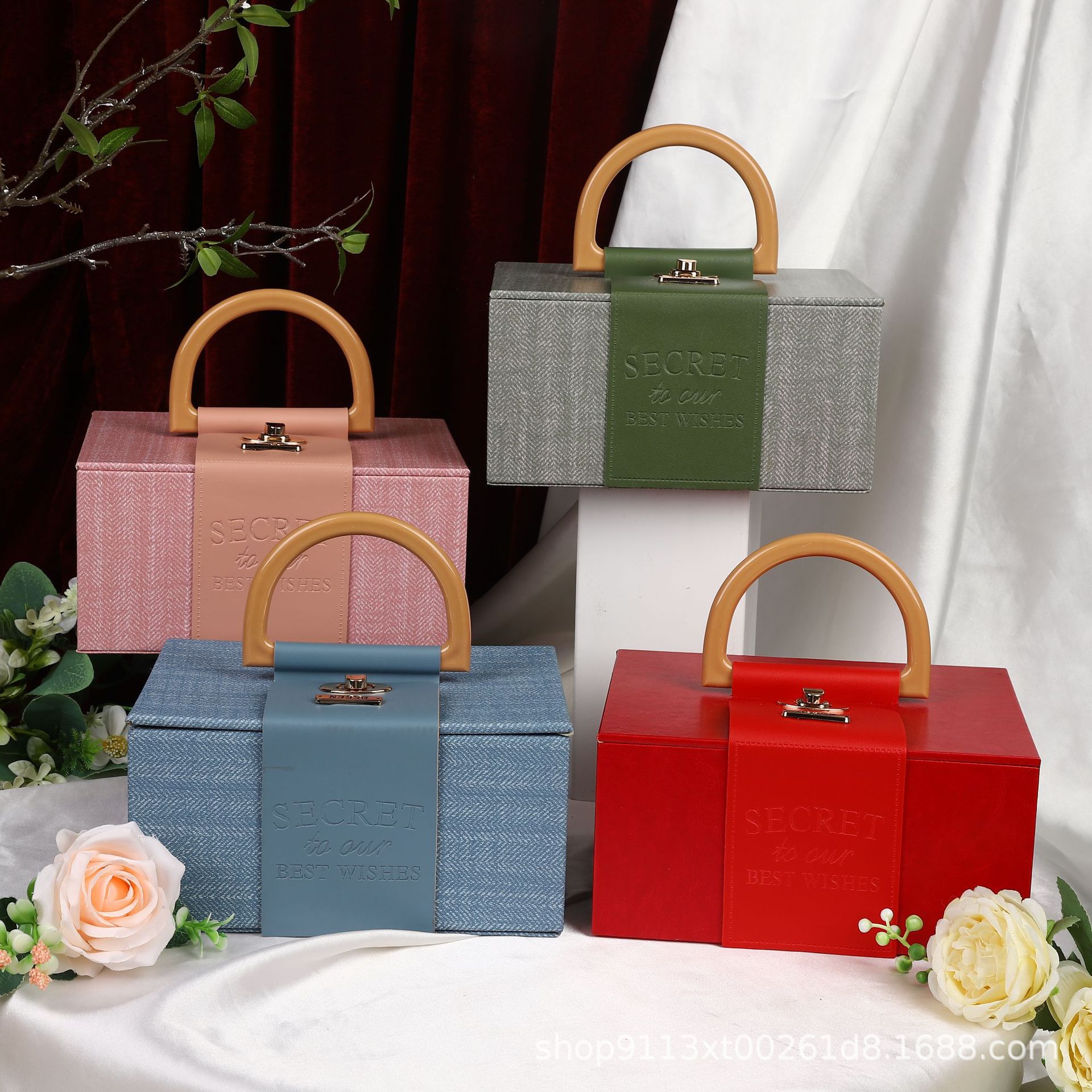 高級感お土産ギフトボックス手提げギフト包装空箱喜糖箱花嫁pu皮ボタンプレゼント手提げ箱