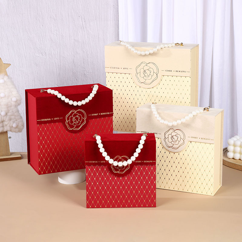 新しい真珠のプレゼントの箱は結婚します。赤い手提げの喜糖の箱は新しい中国式の手のプレゼントの箱です。