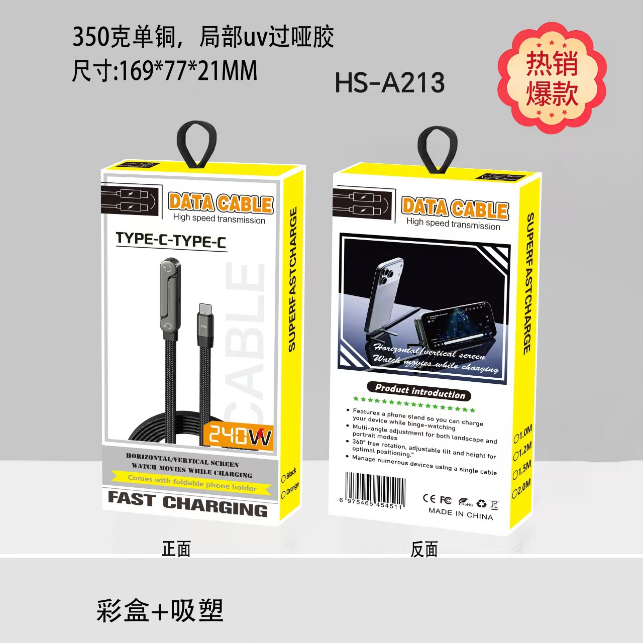 手机支架数据线快充240w充电线彩盒,现货包装工厂