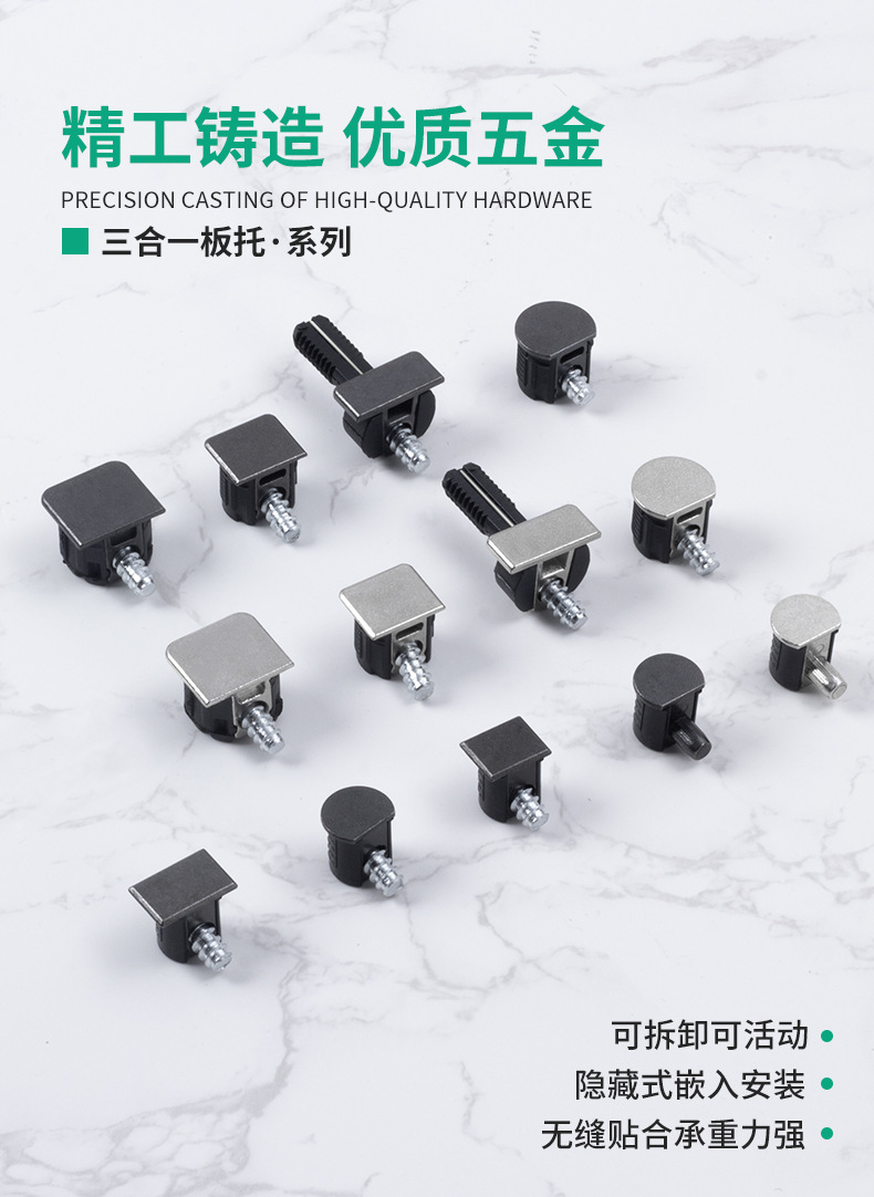 三合一层板托隐形活动隔板钉玻璃层衣柜锌合金层板拖钉板托连接件