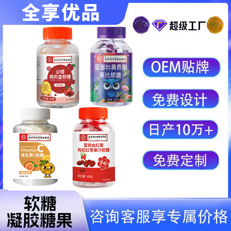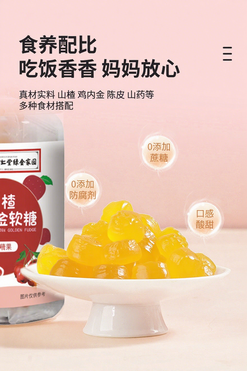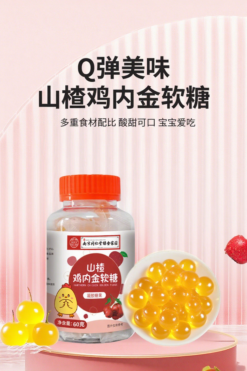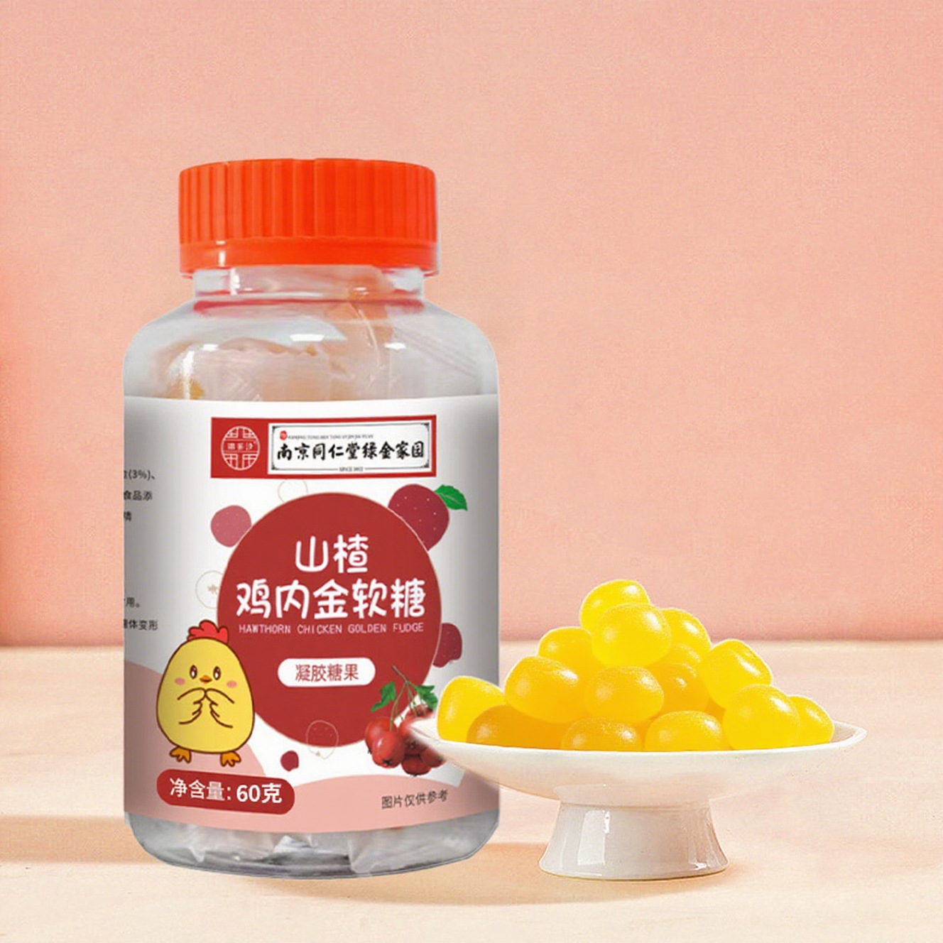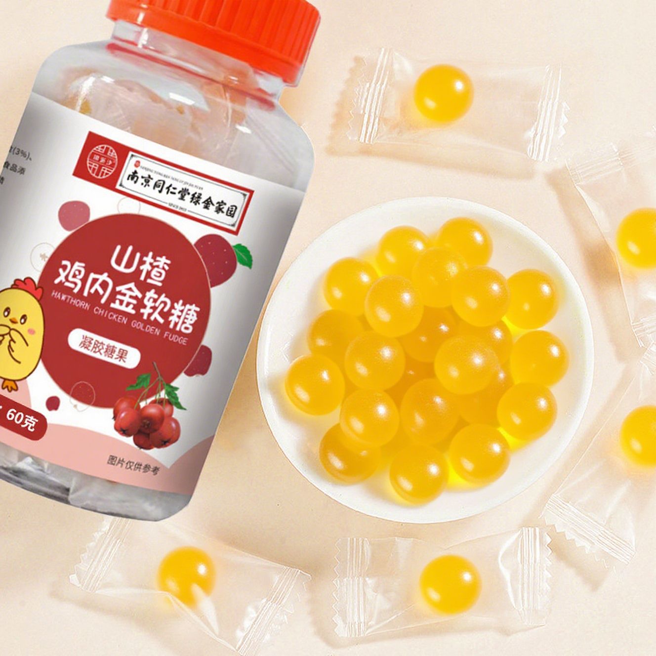 南京同仁堂山楂鸡内金软糖凝胶糖果60/瓶源头厂家现货批发软糯