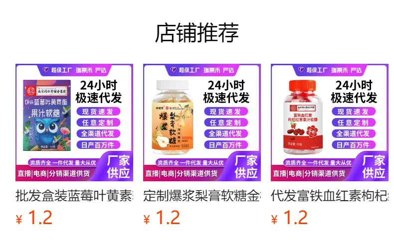梱包仕様 サンザシチキンナゲット,鉄分たっぷりのグミ,DHA ブルーベリー ルテイン ボトル,DHA ブルーベリー ルテイン ボックス,爆発的な梨ペーストグミキャンディー,ビタミンCグミ