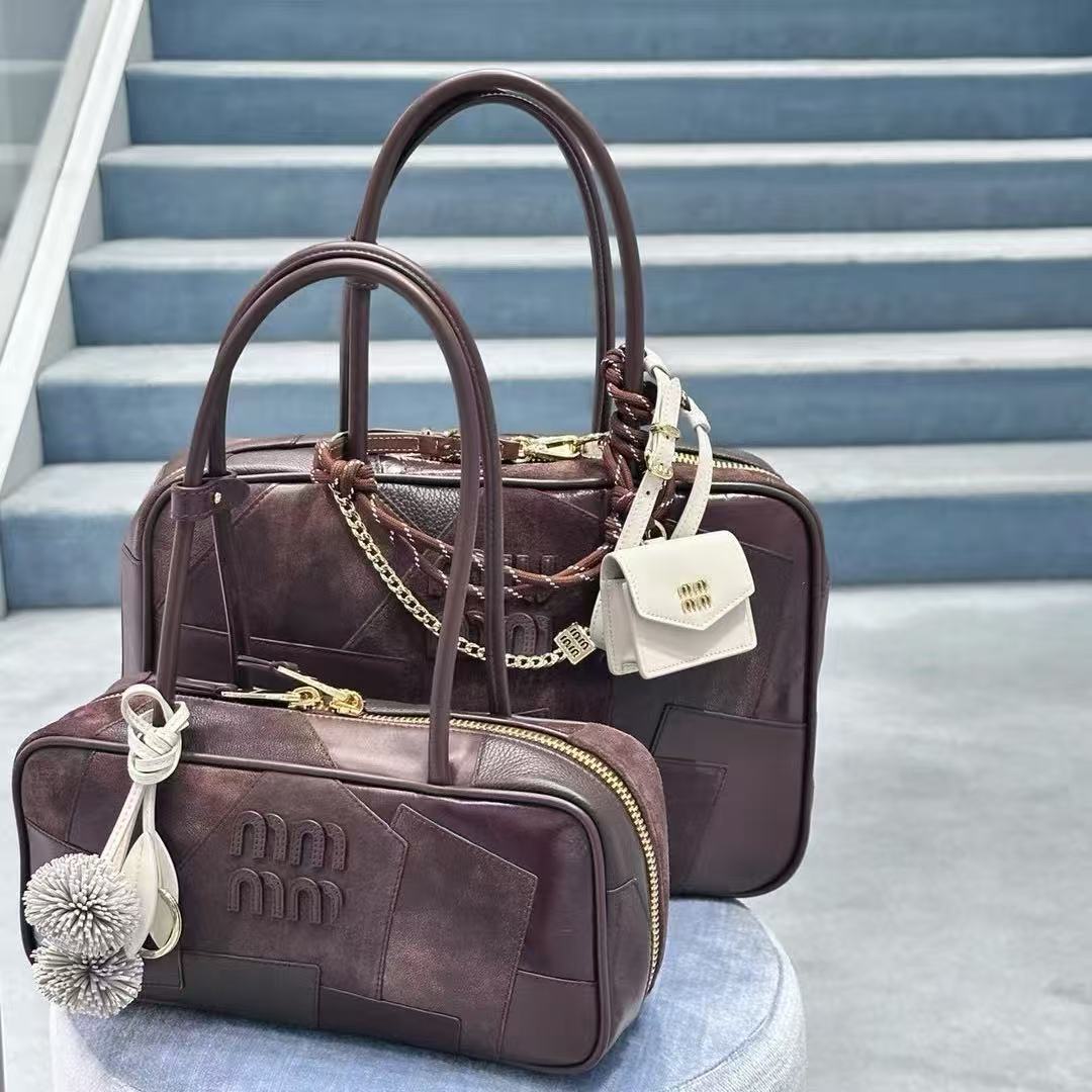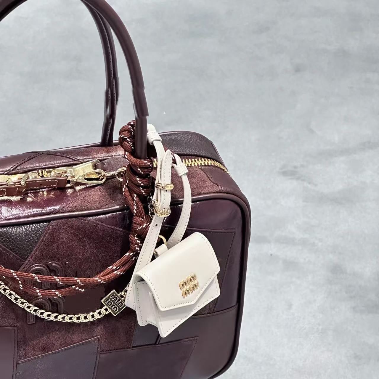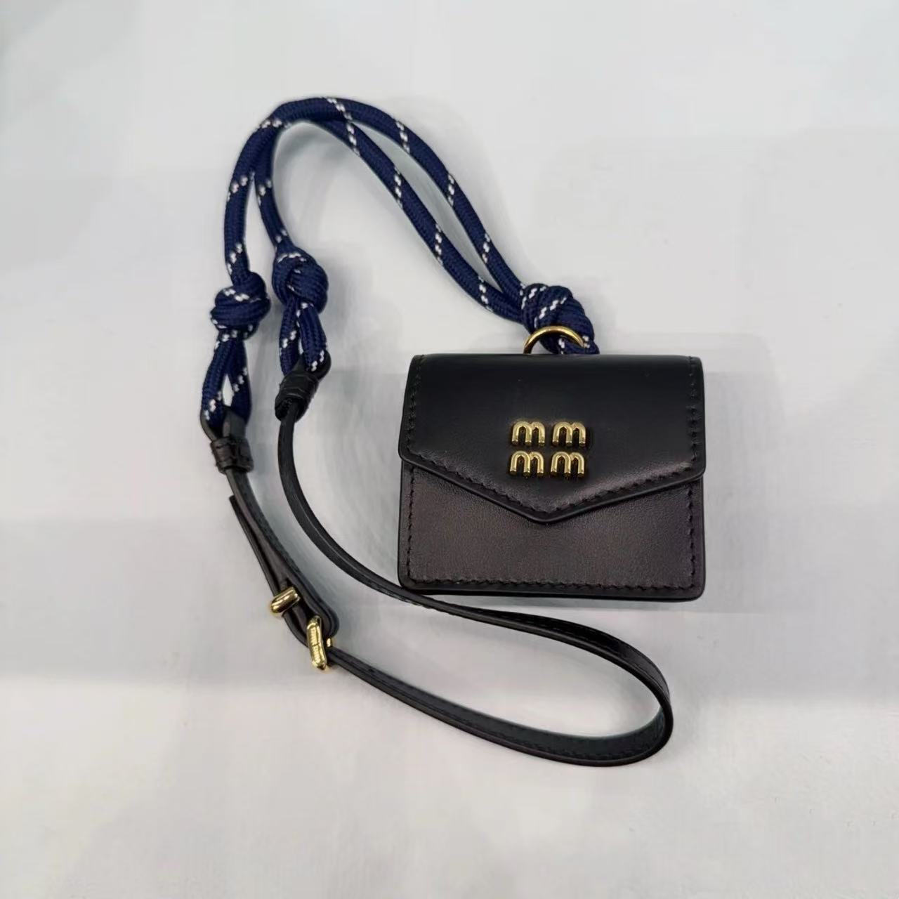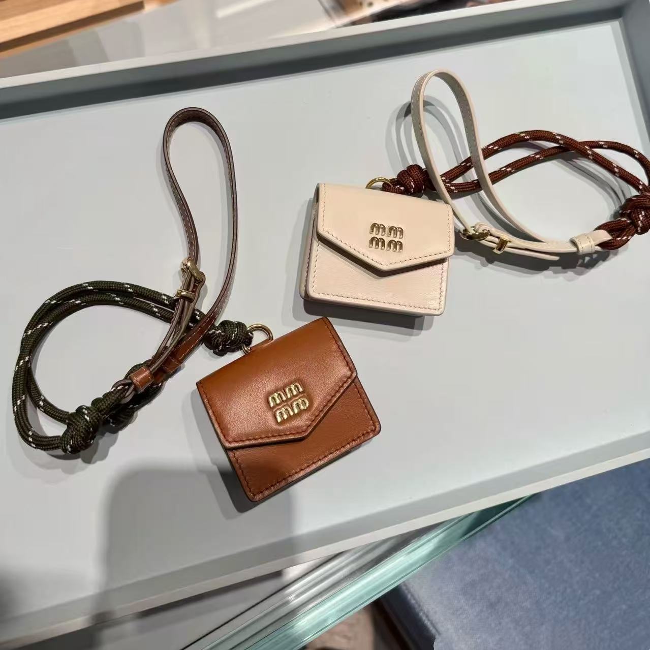 高級現物のミュウMのアルファベットの小さい方の包みの掛け物の新型のロープの茶色の牛革の装飾のイヤホンの包みのネックレス